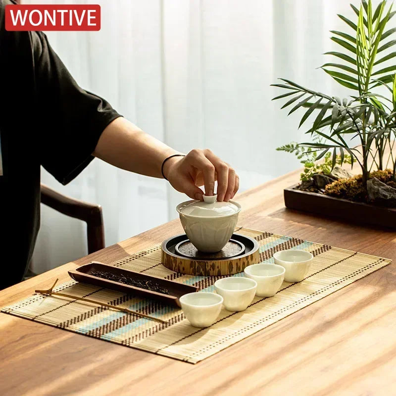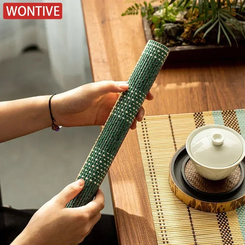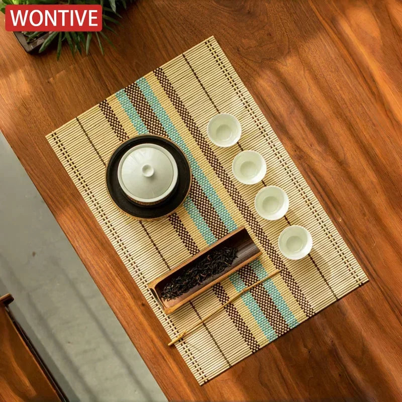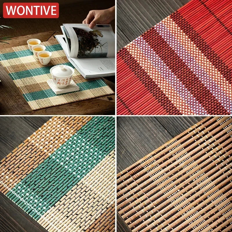 1pc Bamboo Placemat Coaster Japanese Style Anti-scalding Waterproof Multifunctional Eco-Friendly Non-Slip Table Pads Kitchen Mat