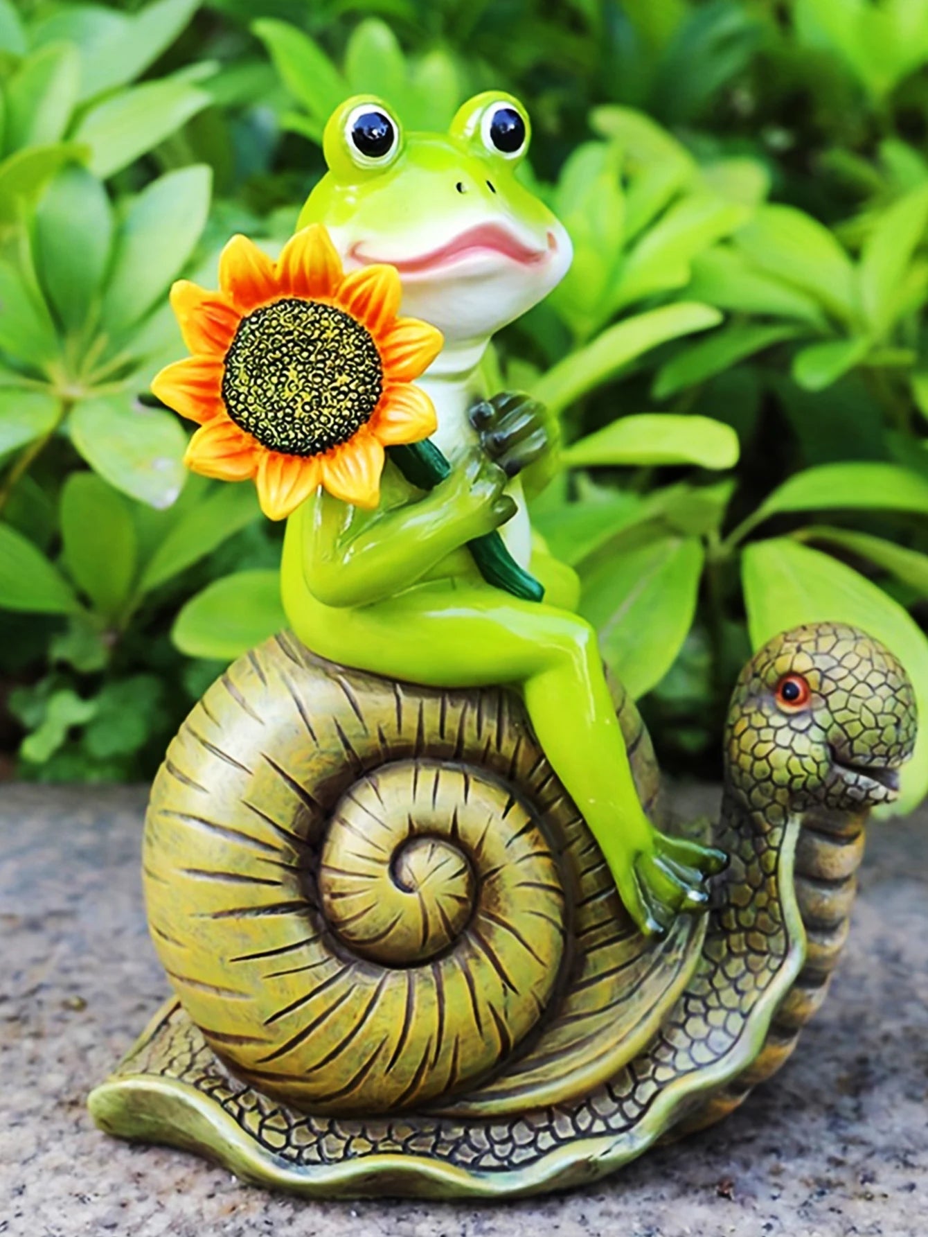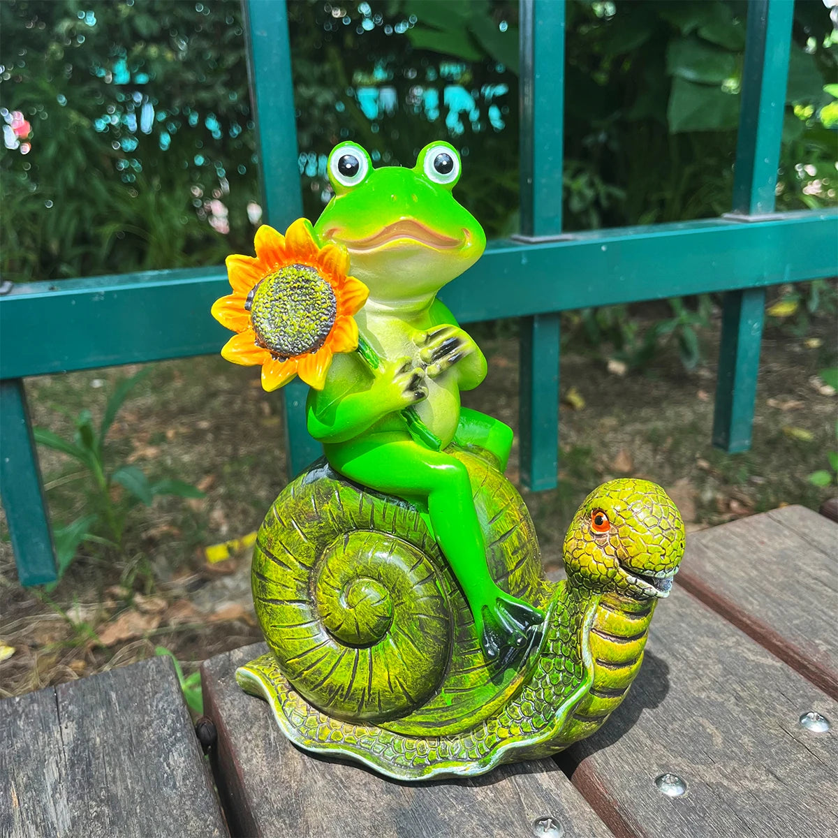 1pc cartoon frog riding snail statue, animal outdoor garden resin crafts, art decorations, landscape garden sculpture.