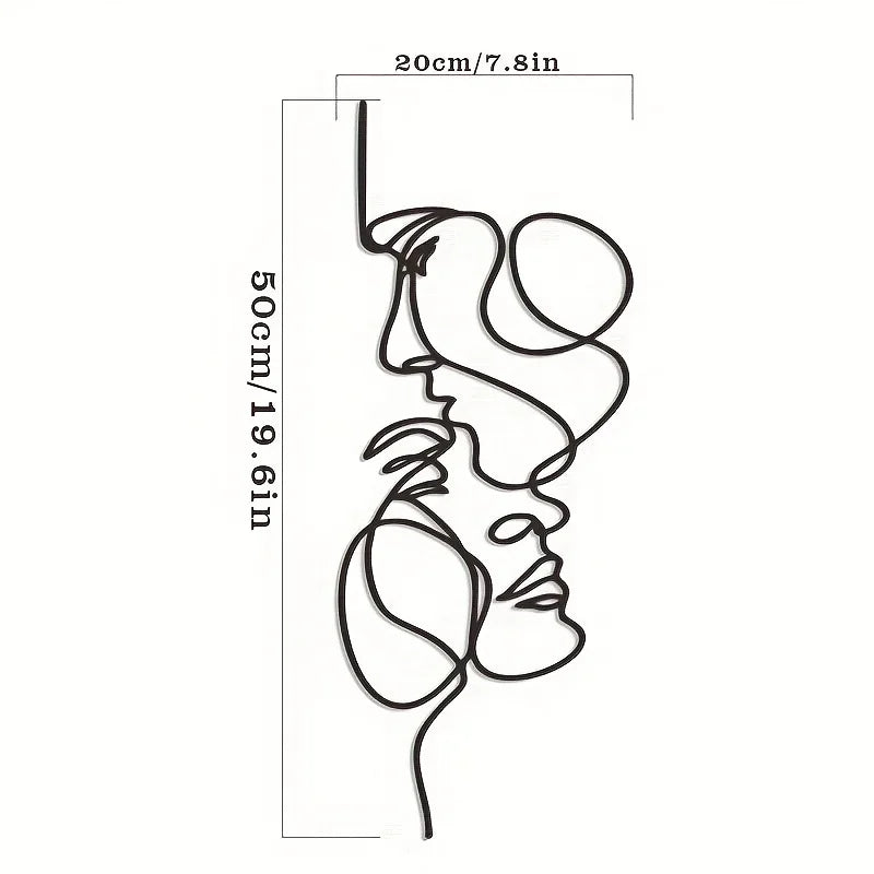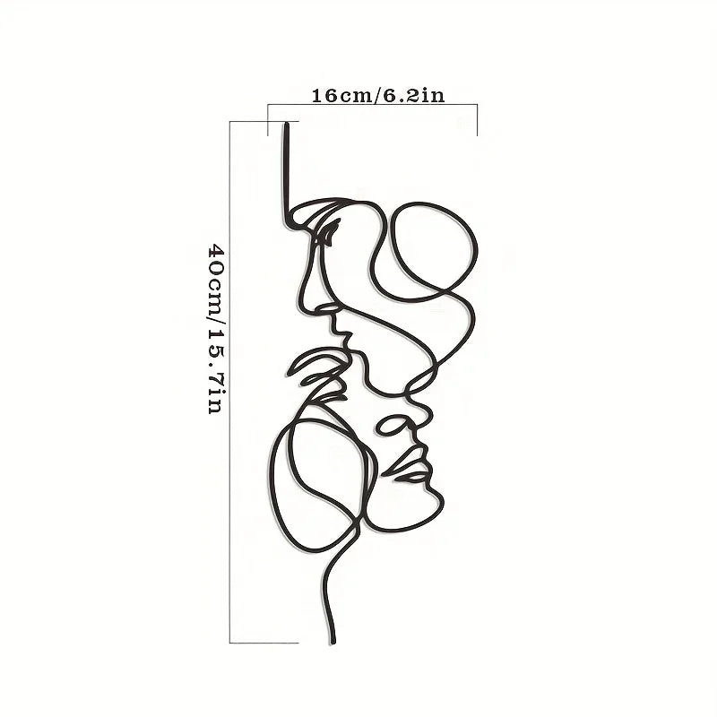 1pc Metal Wall Art Minimalist - Facial Line Wall Decor, Abstract Black Iron Sculpture for Modern Home Hanging Decor