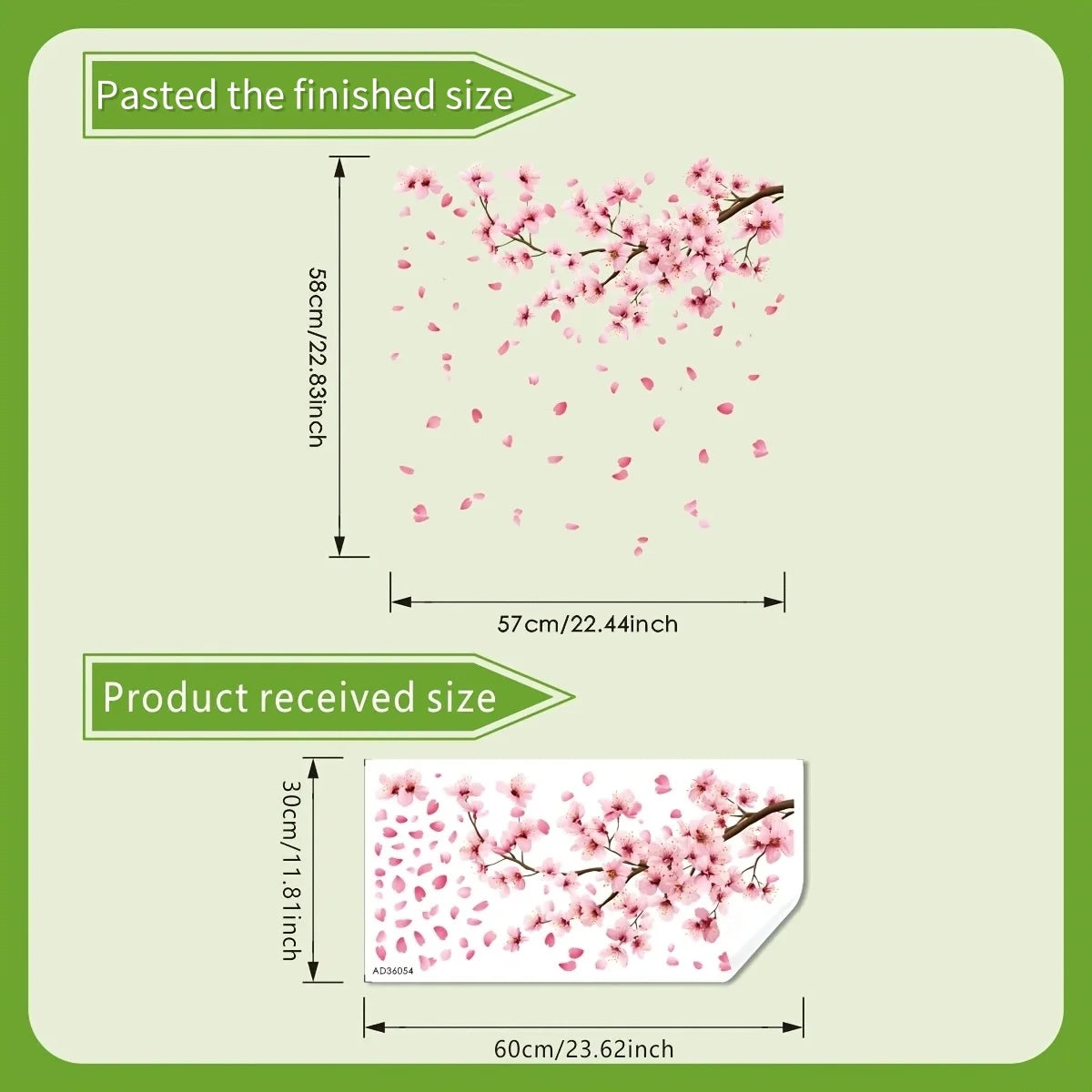 1PC New peach blossom falling branches wall decoration sticker, living room entrance TV wall decoration self-adhesive