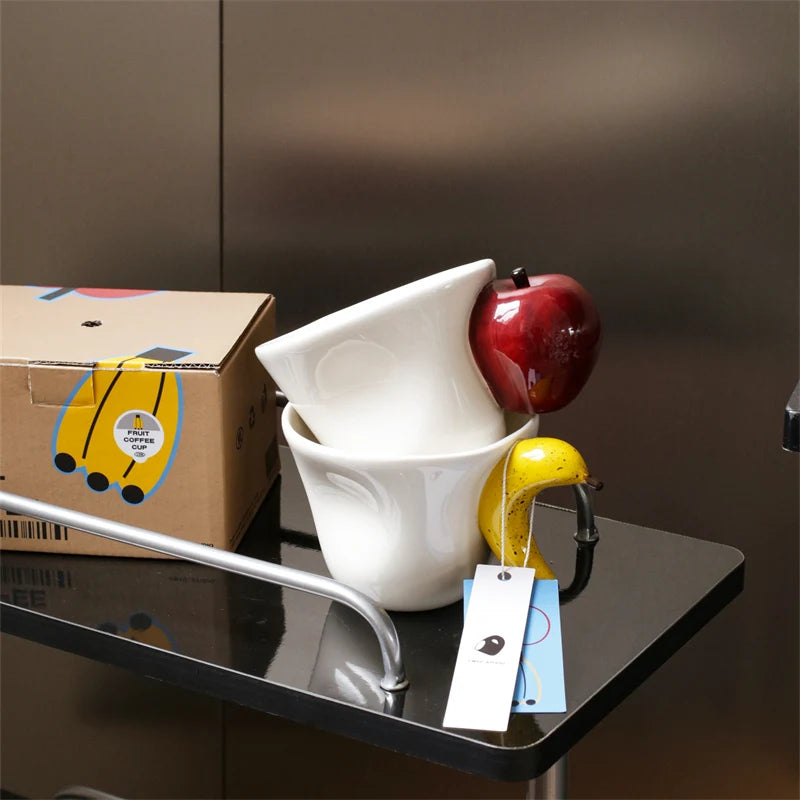 1Pc Original Banana Apple Cup Mug, Hand-Painted Ceramic Coffee Cup Couple Cup, Suitable for Home Drinking Water, Breakfast Milk Cup, Afternoon Tea Coffee, Restaurant Cafe Latte Flower Cup
