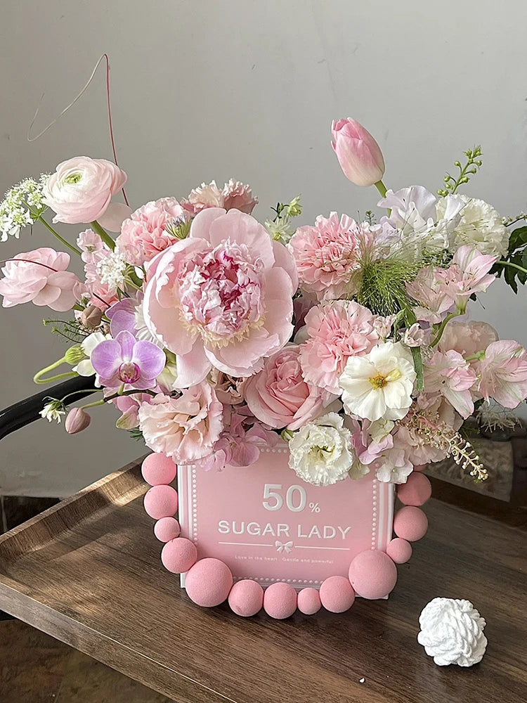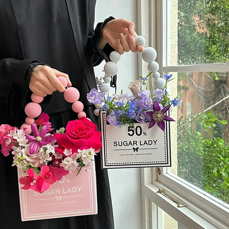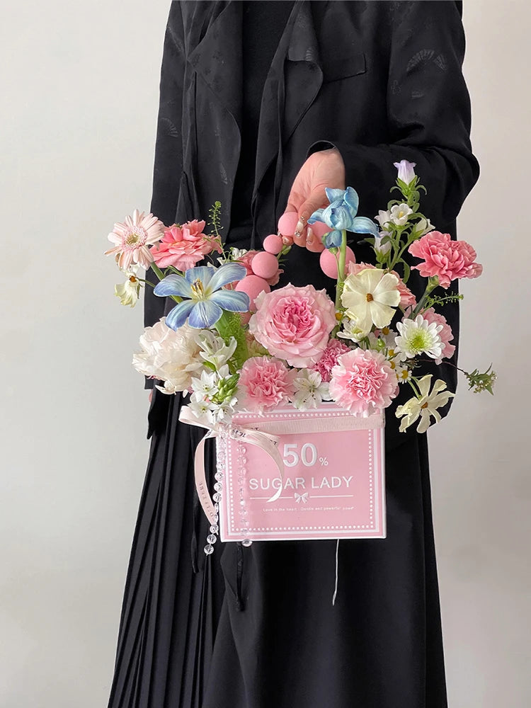 1pcs Art Cardboard Embossed Letter Bubble Folding Handheld Flower Box Party Supplies Portable Flower Arrangement Box Gift Box