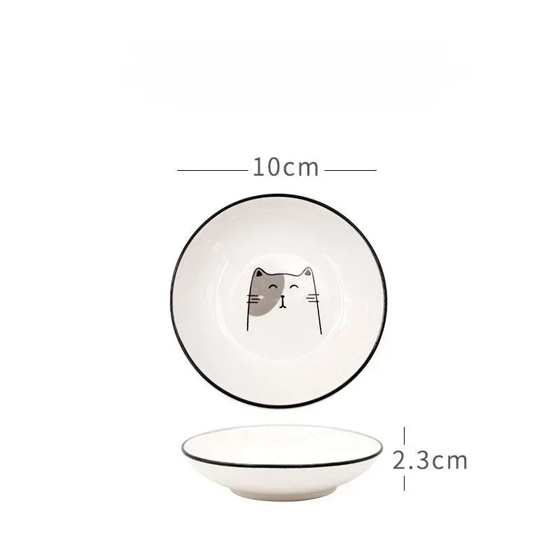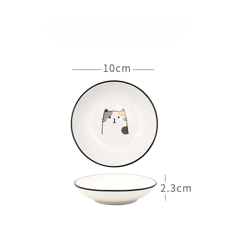 1pcs Cute Cat Ceramic Seasoning Dish Creative Kitchen Small Sauce Bowl Household Dipping Plate Creative Vinegar Soy Snack Dishes