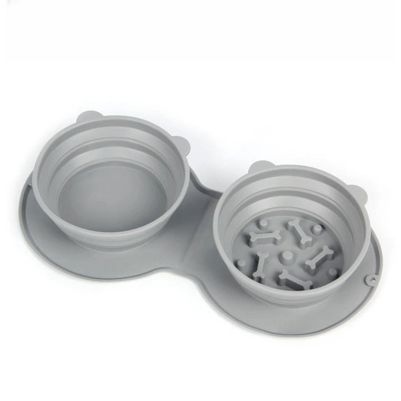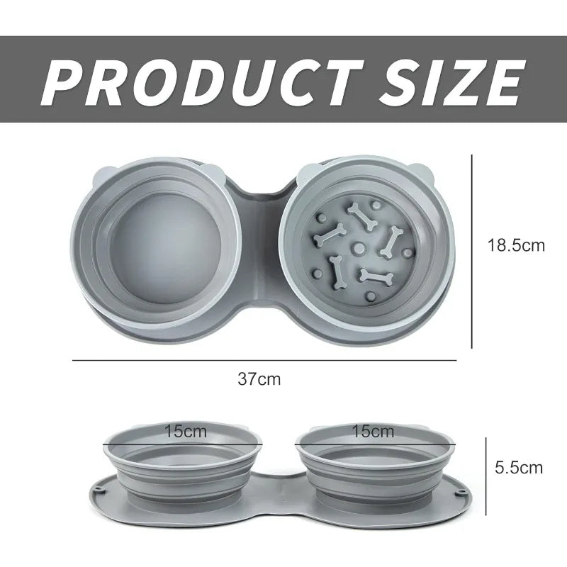 1PCS Retractable Silicone Dog Cat Bowl Outdoor Travel Dog Slow Feeding Bowls Collapsible Double Feeder Dish Prevents Overfeeding