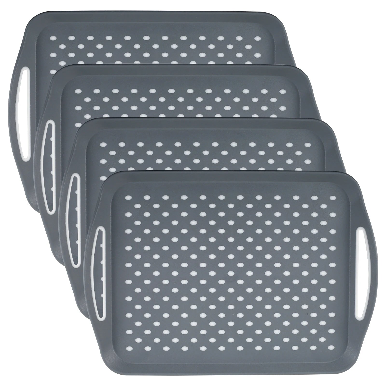 2/4pcs Non Slip Food Serving Tray with Non-Slip Handle Rectangle Gripping Nubs Food Trays Shatterproof Plastic Dinner Trays