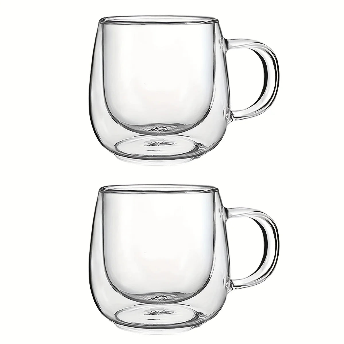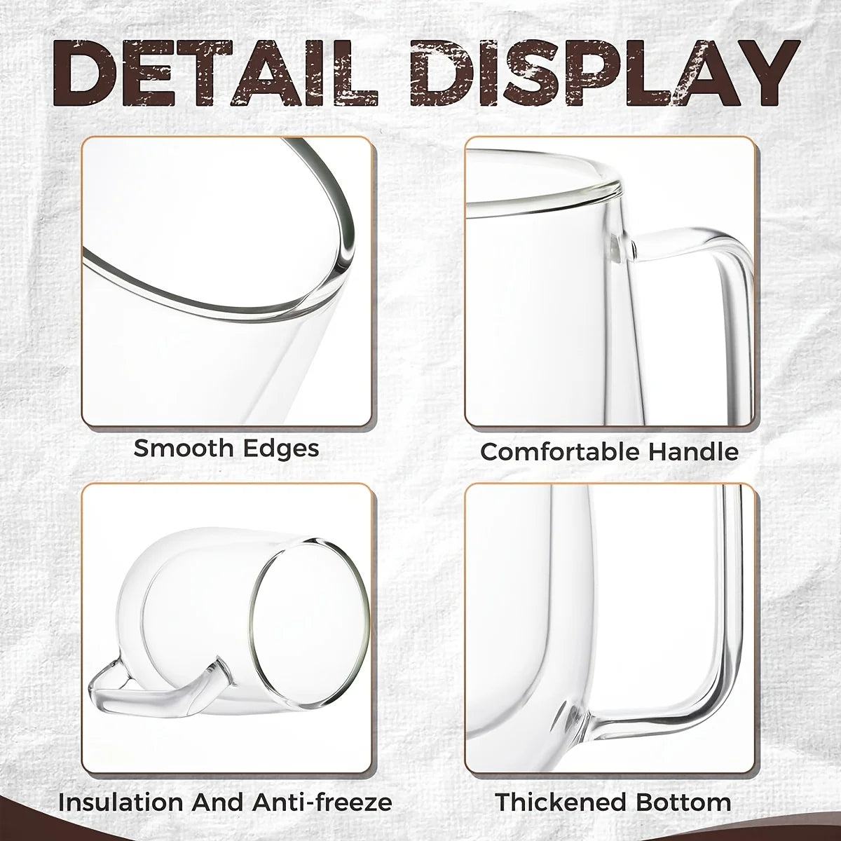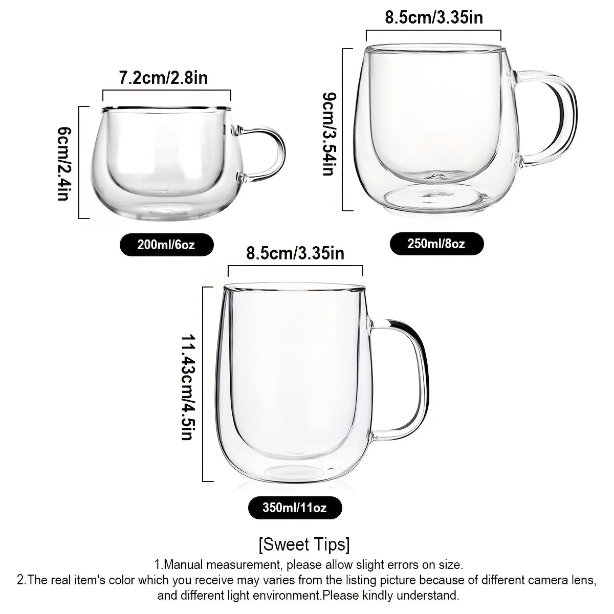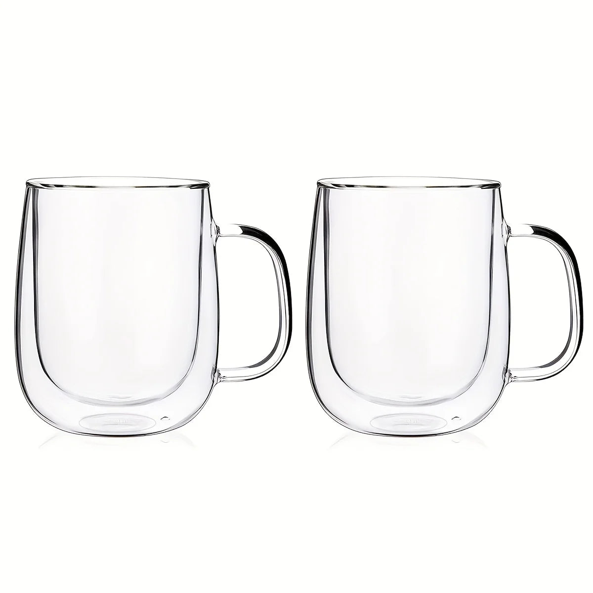 2 Pack Glass Coffee Mugs - Double Wall Insulated Mug Set with Handle, Tea Latte Cappuccino Cup for Latte, Macchiato, Americano