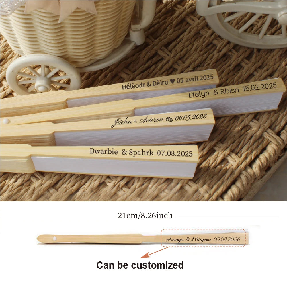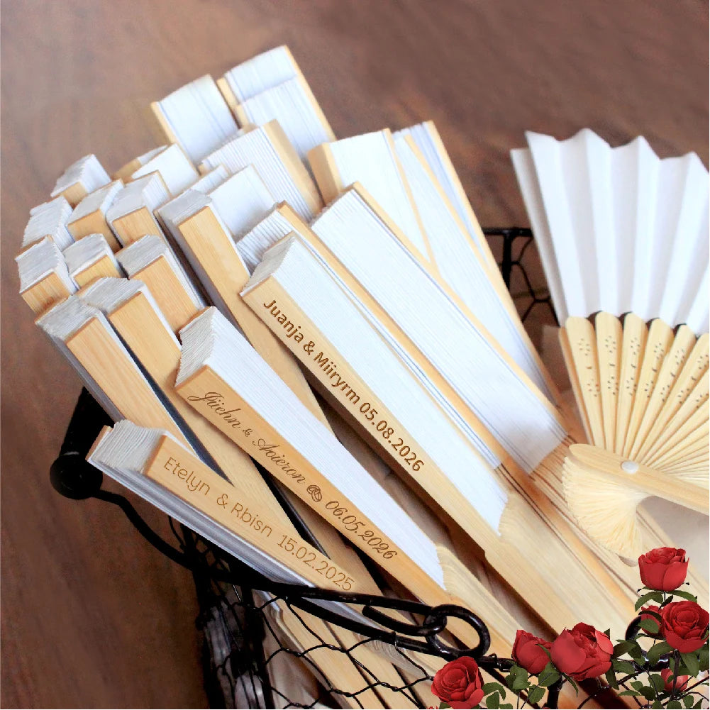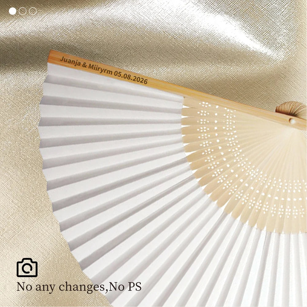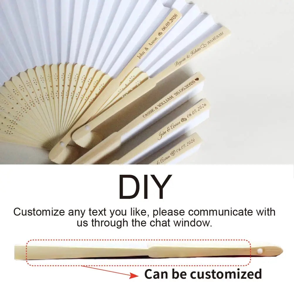 20/30/40/50 personalized carved white folding elegant paper fans, used for bridal showers, beaches, and weddings. Bamboo hand fa