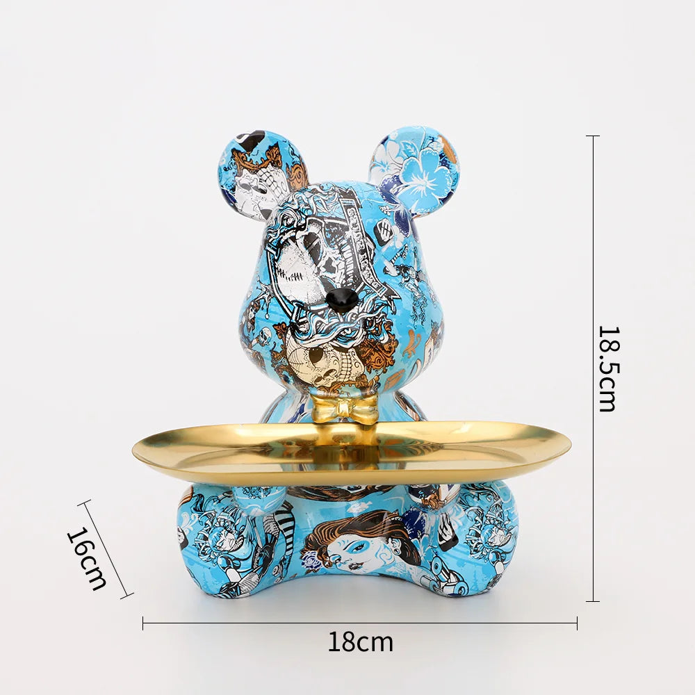 2025 New Graffiti Bear Figurine Home Decoration Animal Statue Keys Storage Shelf Modern Room Sculpture Table Decor Statues Gift