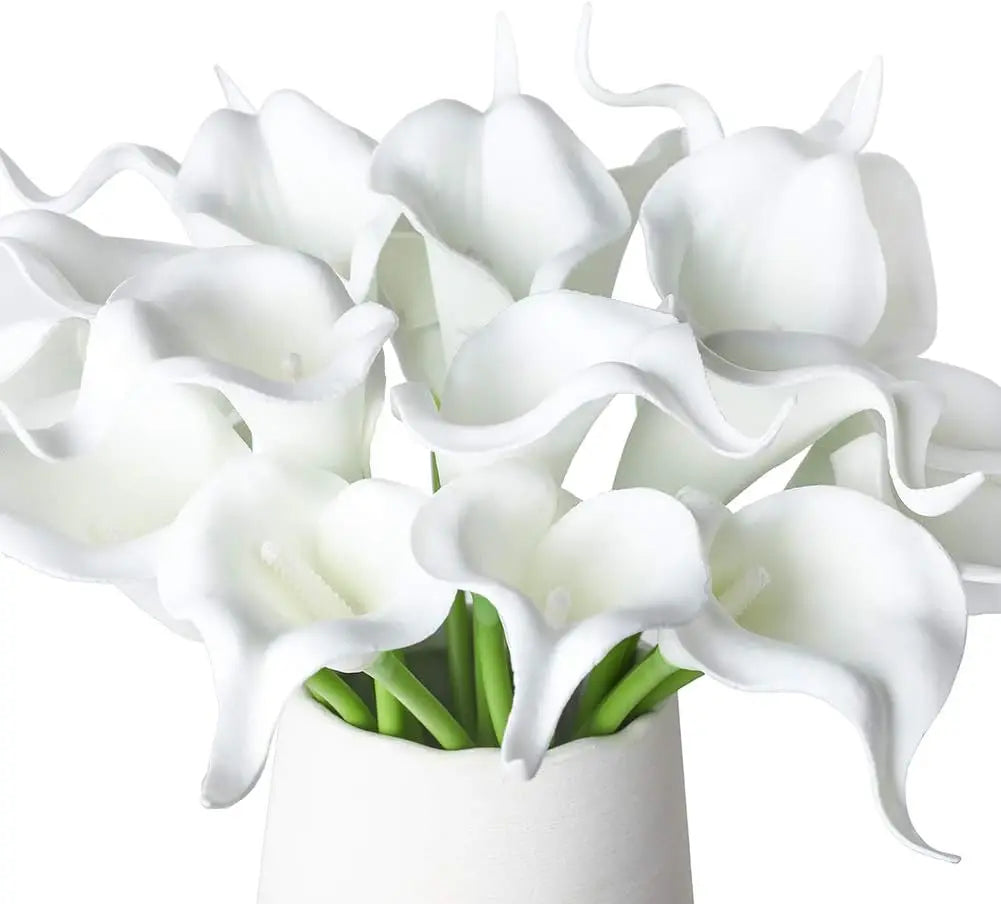 20Pcs Artificial Calla Lily Flower Real Touch Latex Flowers for DIY Wedding Bouquet Party Home Decor (Pure White)