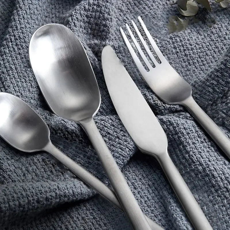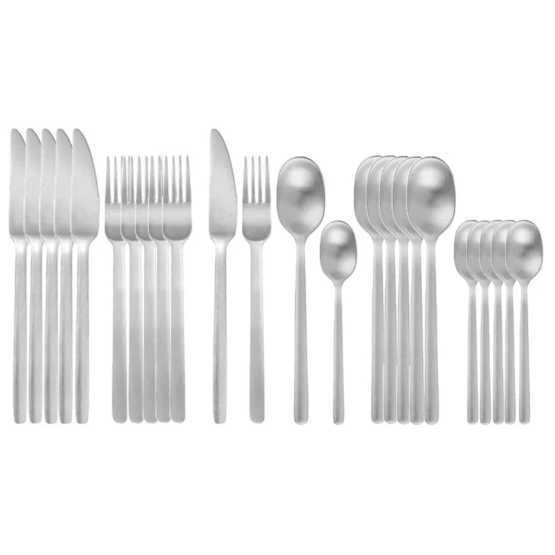 24pcs Matte Gold Flatware Set Stainless Steel Cutlery Knife Fork Spoon Silverware Dinnerware Dishwasher Safe Tableware Gift