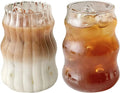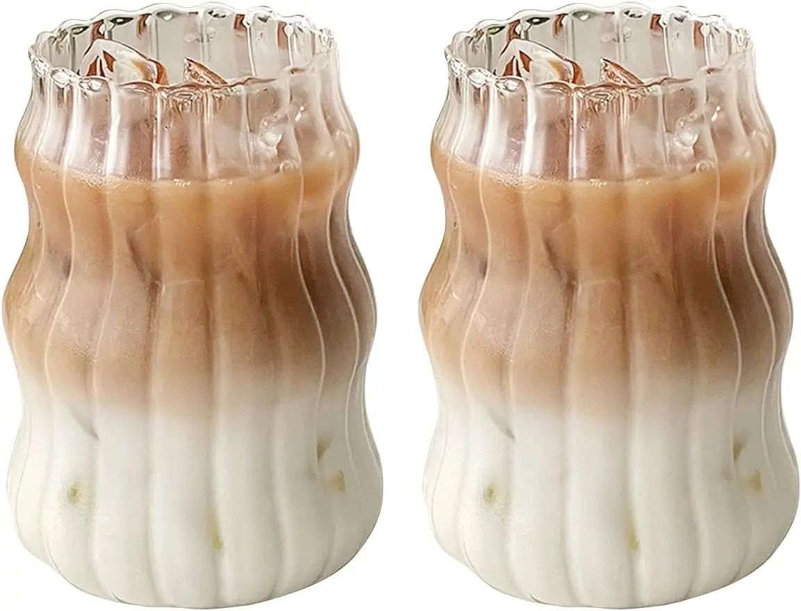 2pcs Coffee Glass Cup Ribbed Glassware Drinking Glasses Transparent Tea Juice Milk Mug Water Wine Cups For House Party Bar