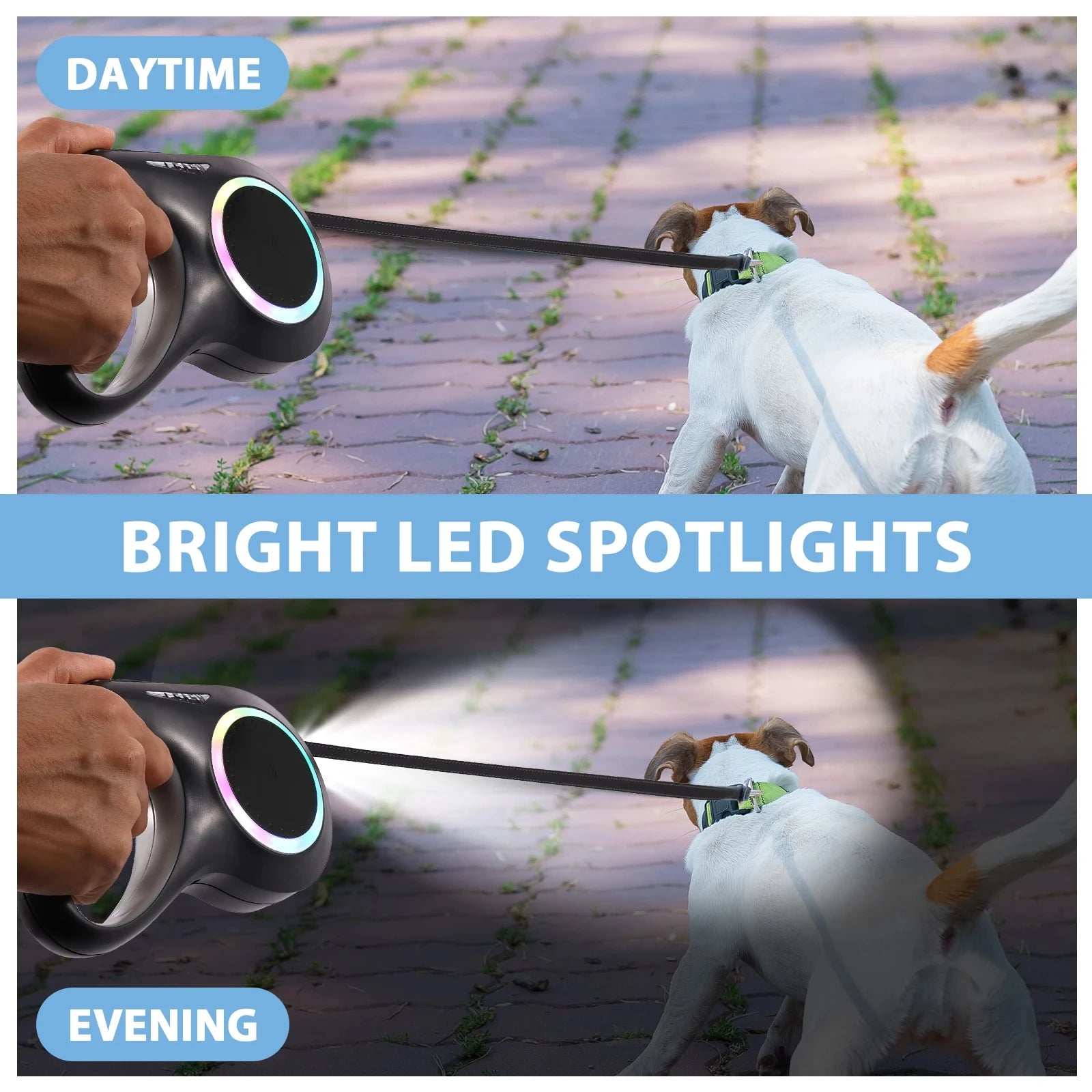 3/8m LED Flashlight Dog Leash Automatic Retractable Pet Luminous Straps Puppy Walking Night Outdoor Walking Non-Slip Handle