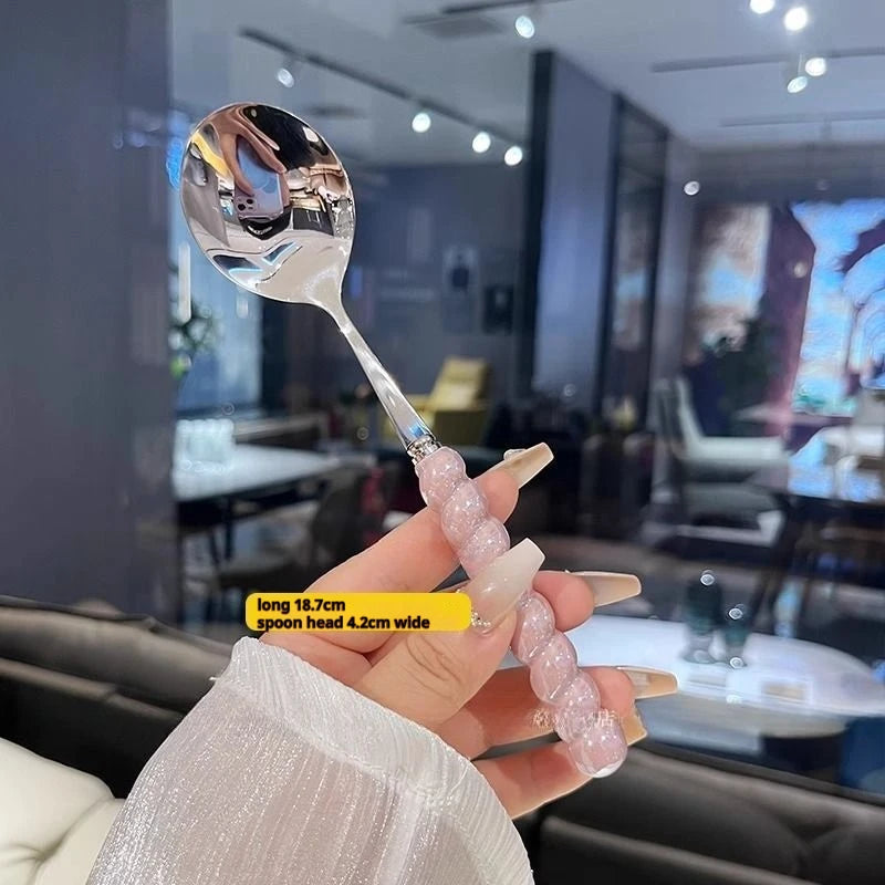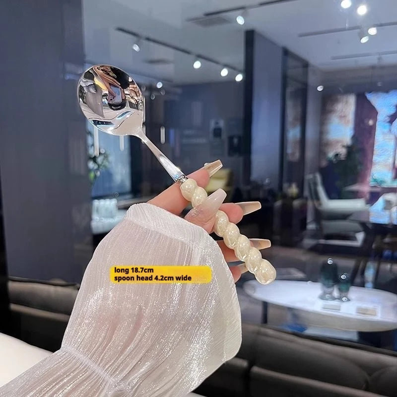 304 stainless steel Girl Pearl five-color imitation ceramic handle stainless steel spoon