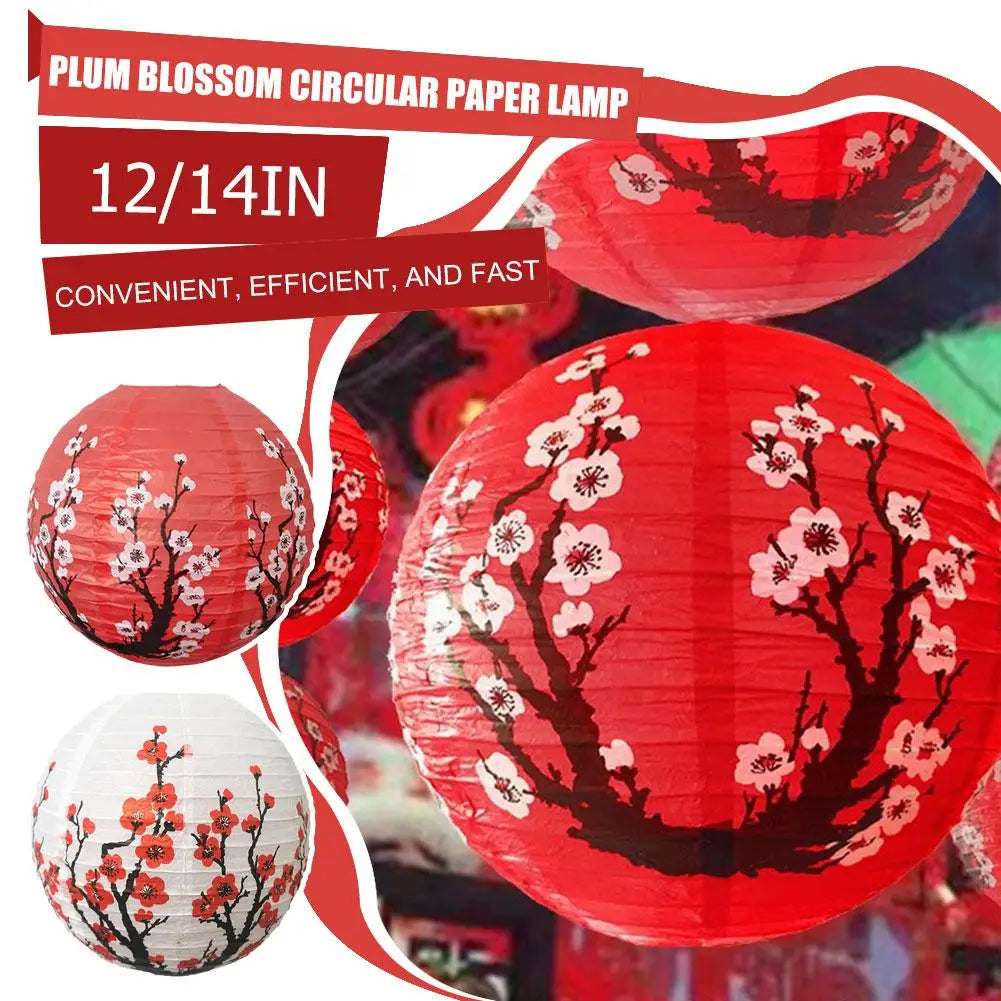 30cm Plum Blossom Round Paper Lantern Lamp Chinese Oriental Style Spring Festival Restaurant Wedding Home Decor Gifts