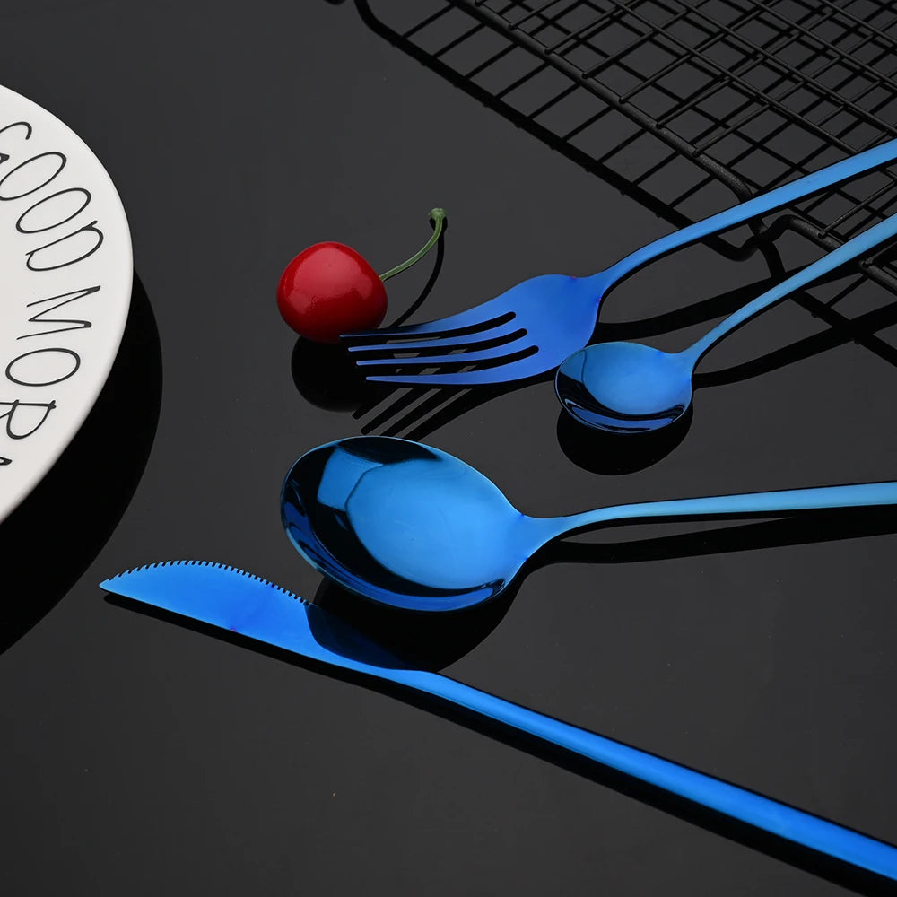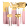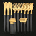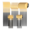 30Pcs/Set Stainless Steel Dinner Black Gold Dinnerware Set Knife Fruit Fork Spoon Cutlery Set Kitchen Tableware Silverware Sets