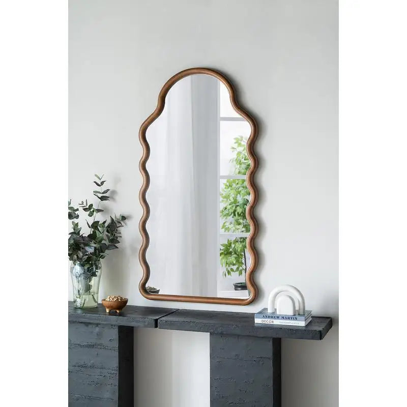 30"x1.5"x55" Arch Wood Mirror with Unique Frame Design