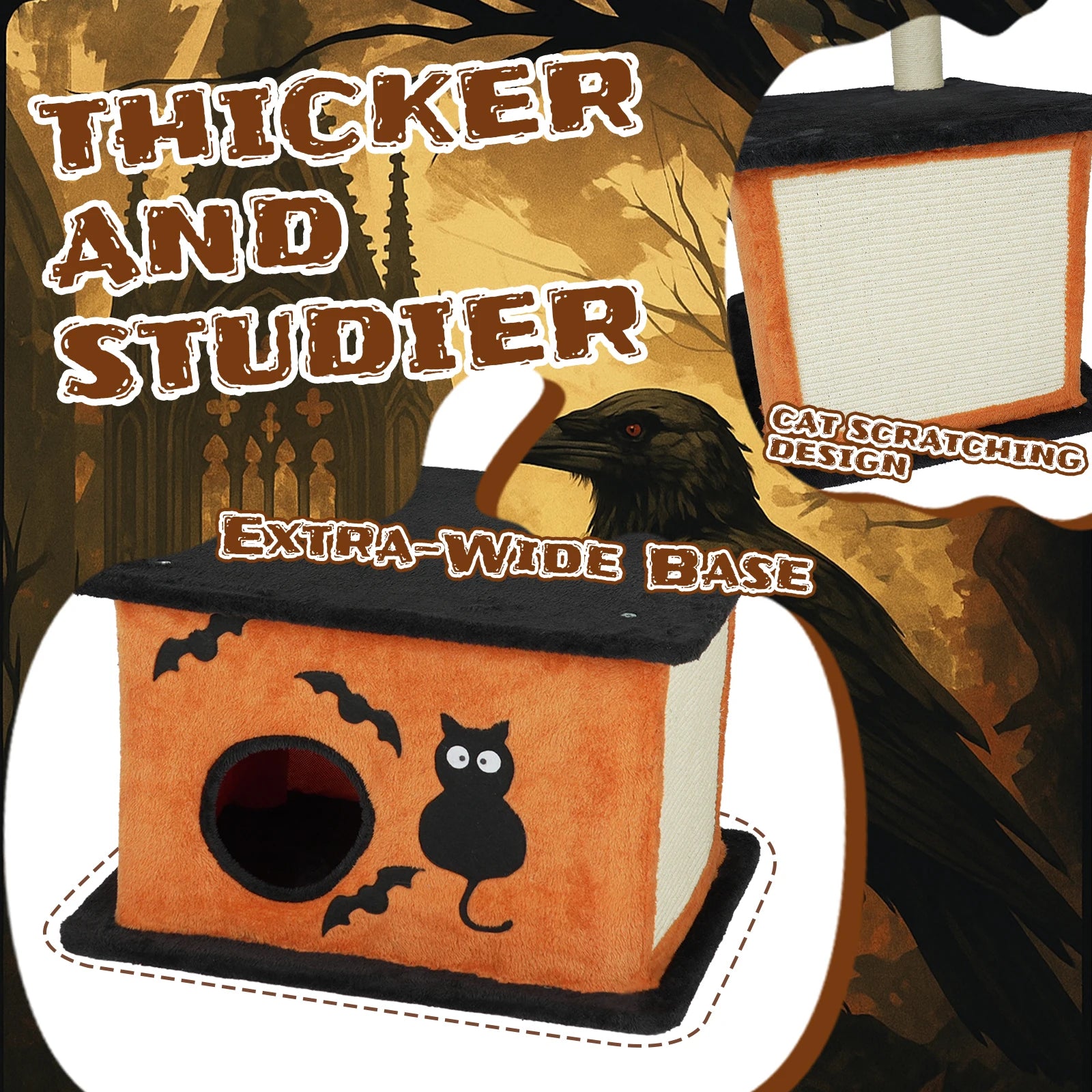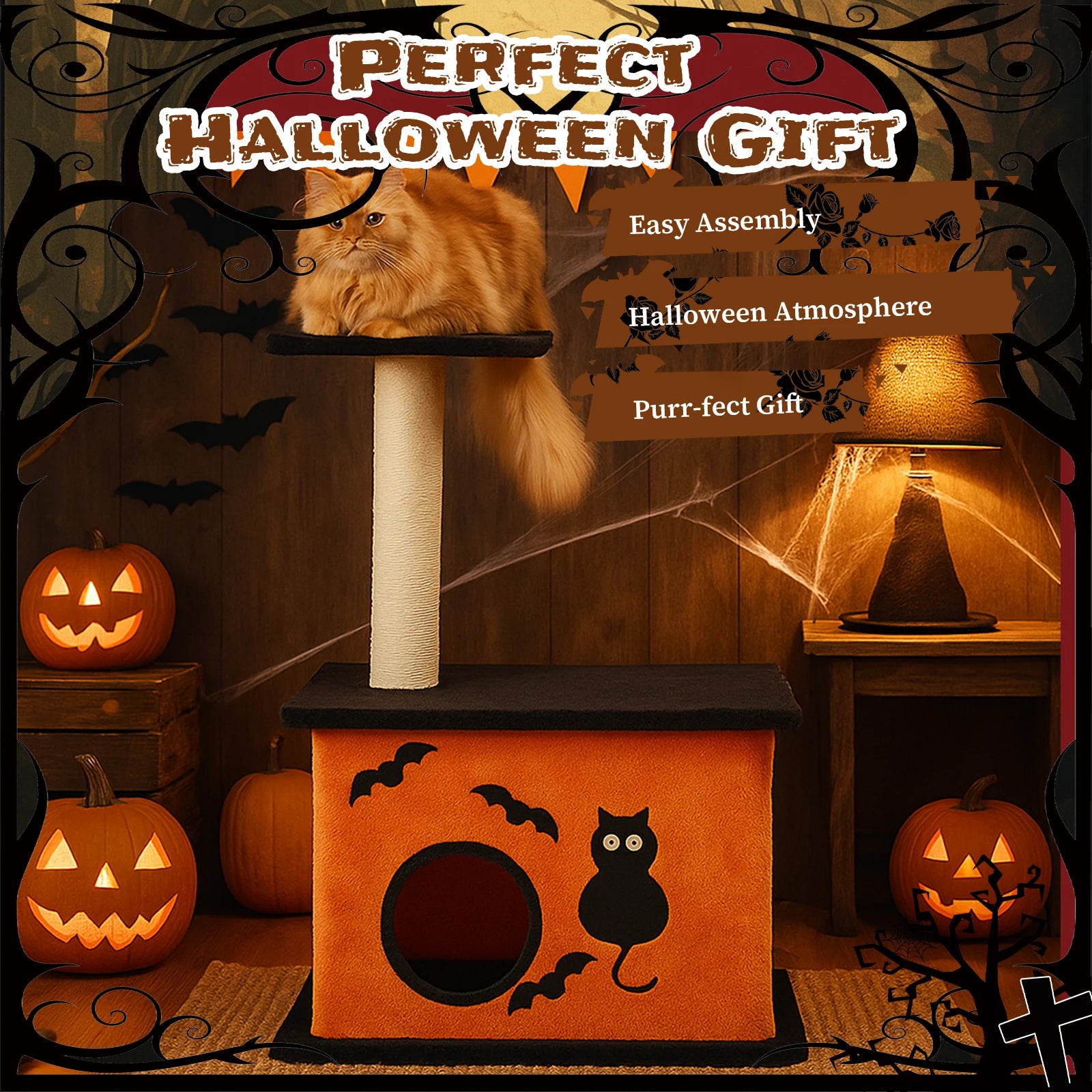 33" Halloween Cat Tree, Cat Tower Tree for Indoor Cats with Spacious Condo, Large Platform, Sisal Scratching Post