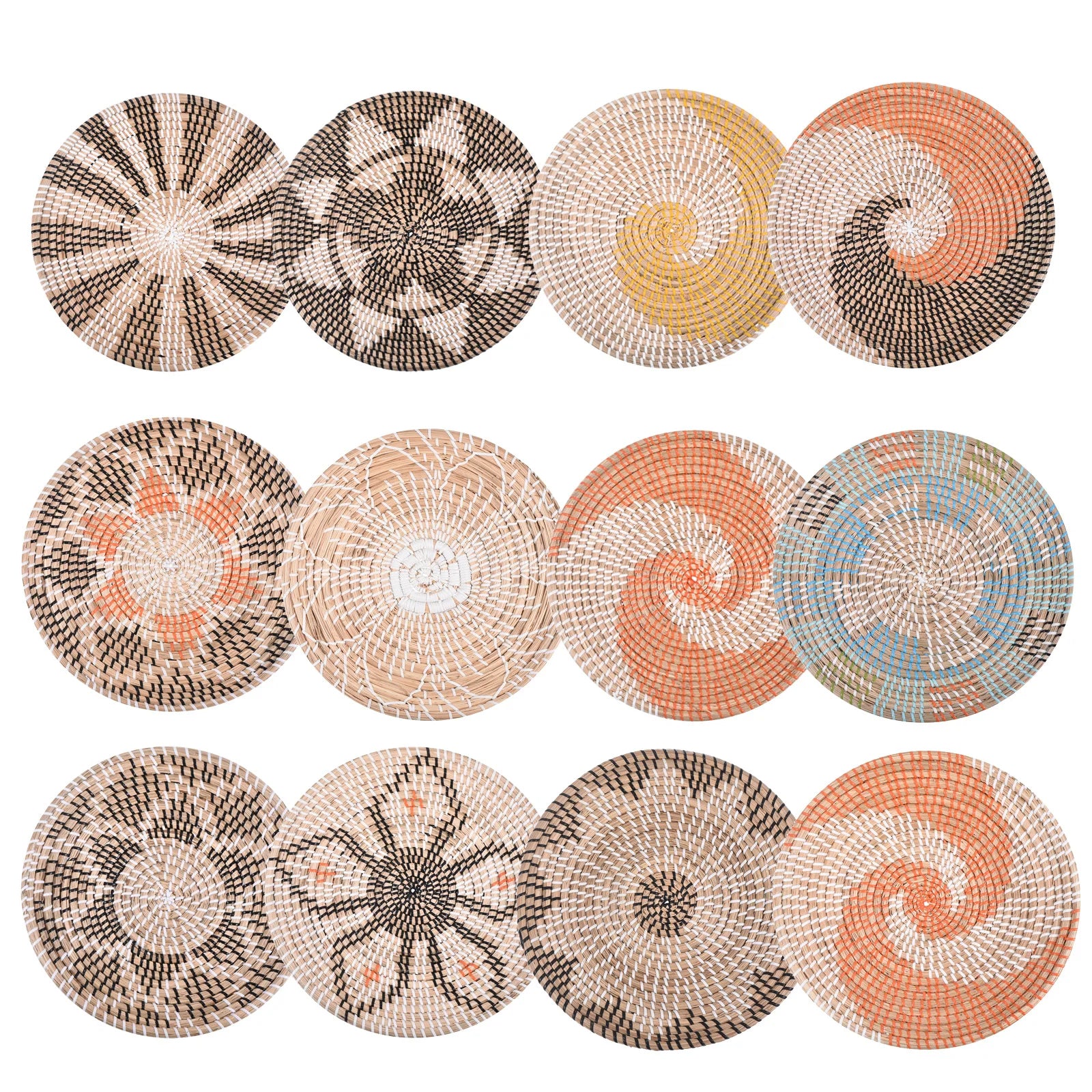35cm Hanging Woven Wall Basket Natural Rattan Wall Basket Decor Boho Farmhouse Rustic Decorative Table Settings for Living Room