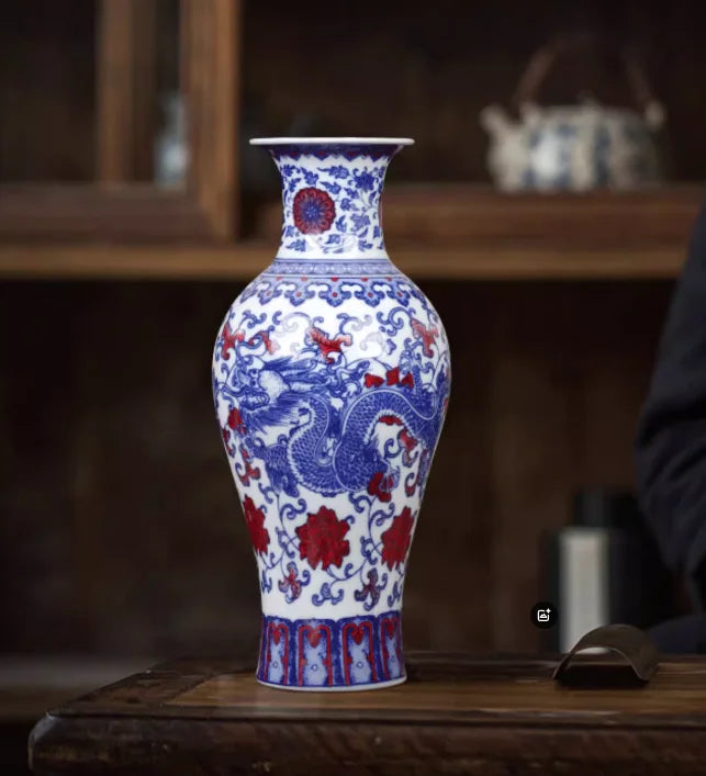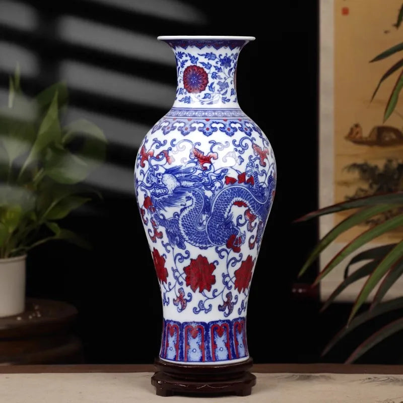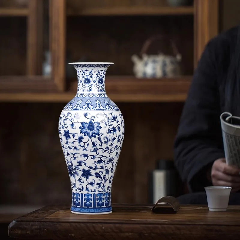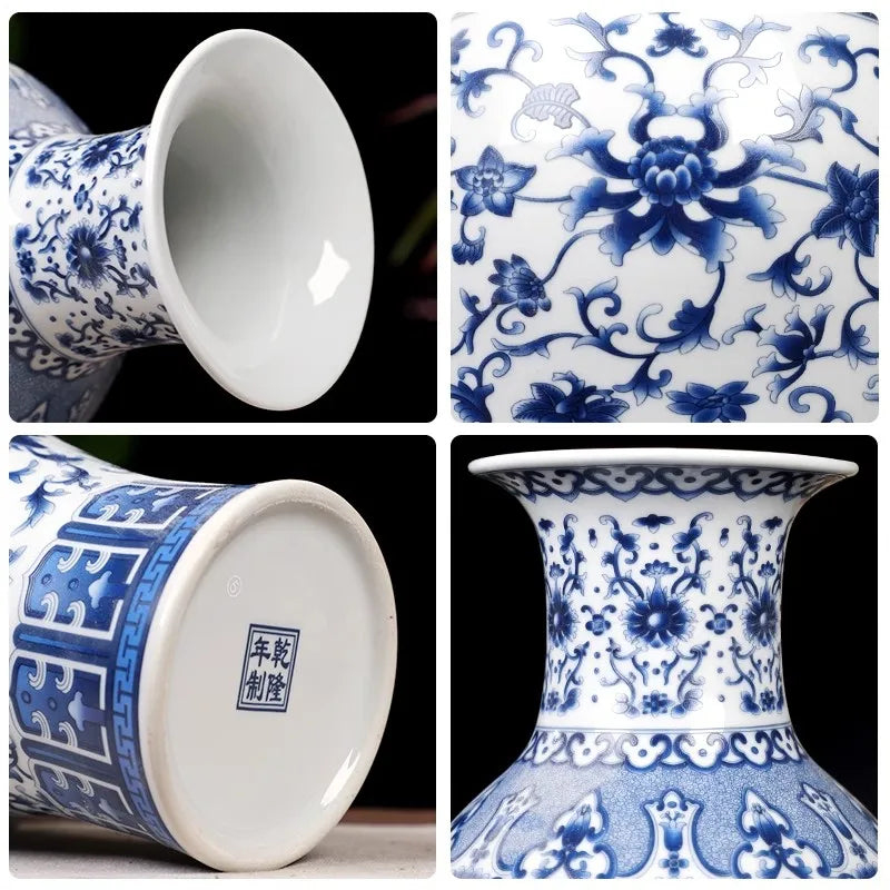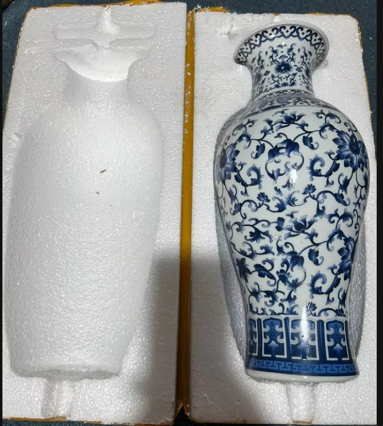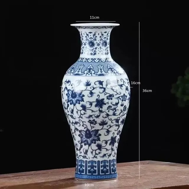 36cm/Jingdezhen blue and white porcelain antique home decoration, living room entrance decoration vase