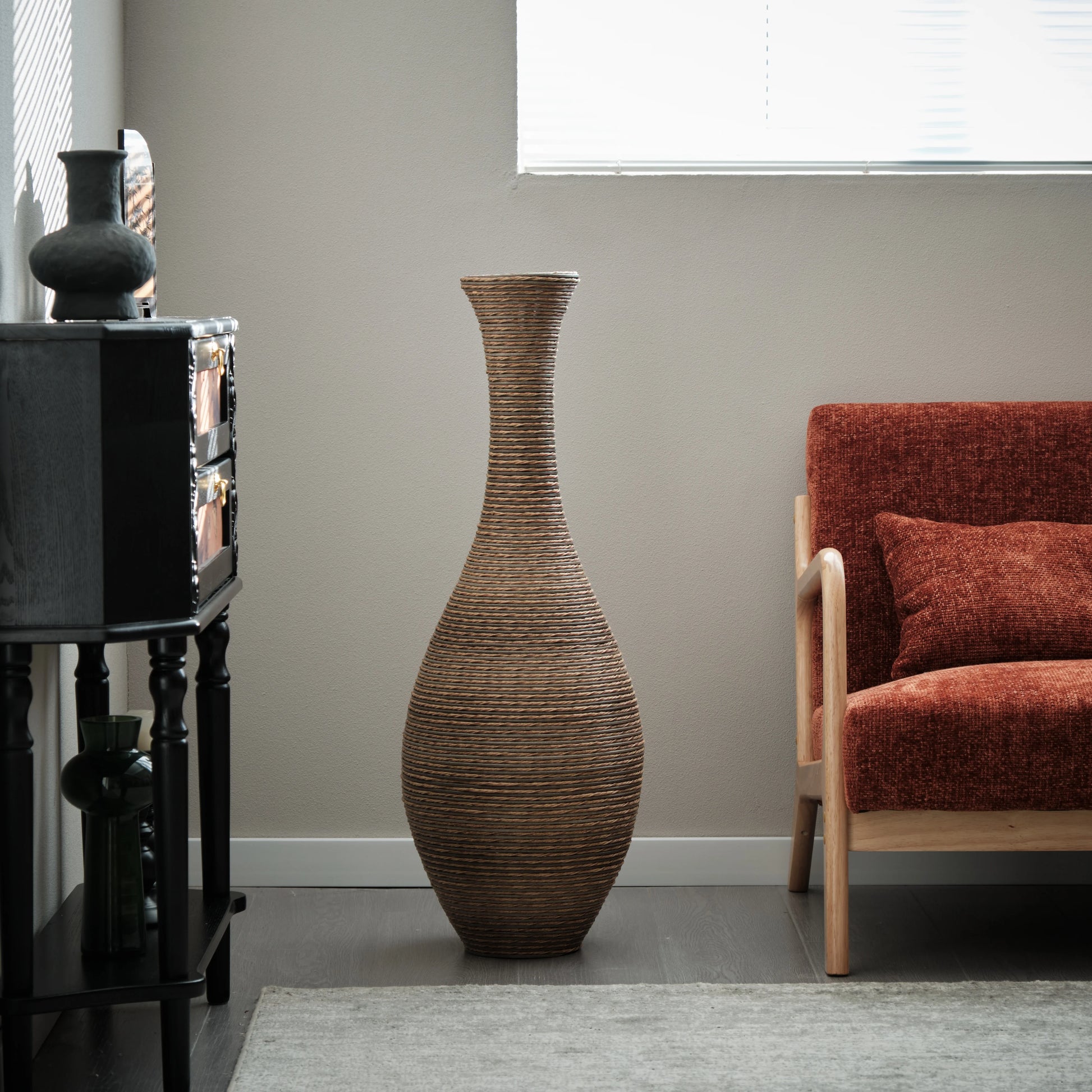 39-inch Tall Artificial Rattan Floor Vase in Elegant Beige - Statement Piece for Living Room Decor, Entryway, or Hallway - Versa