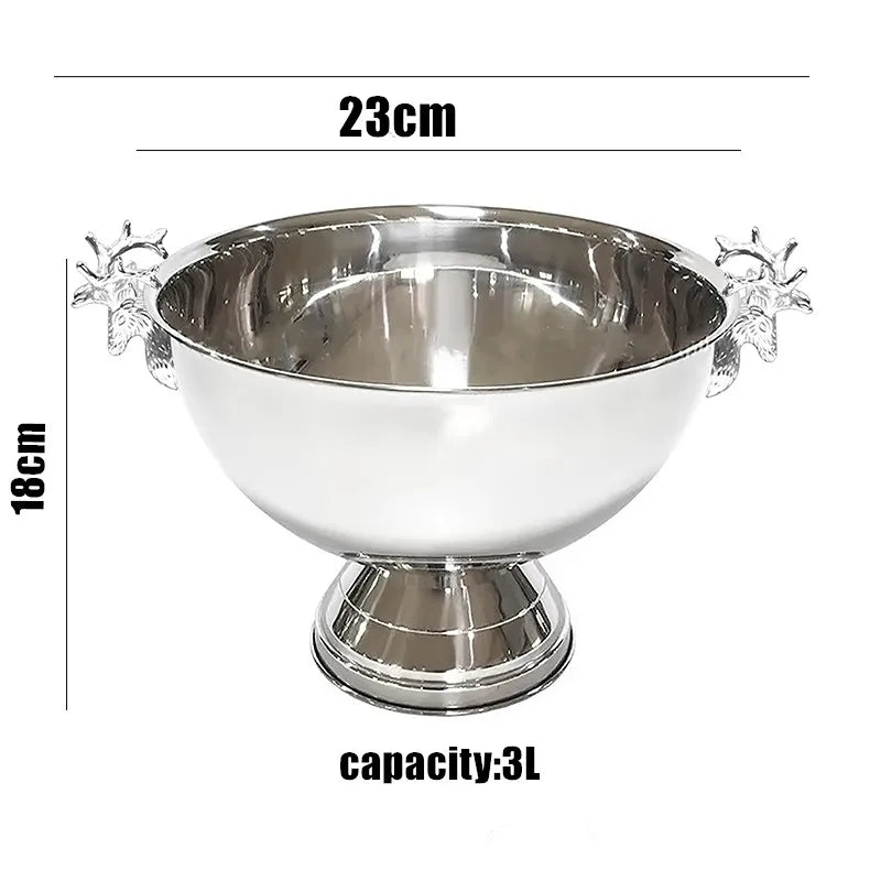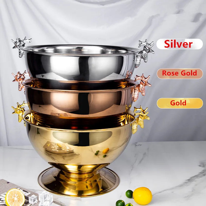 3L/13.5L 304 Stainless Steel Deer Head Ear Champagne Bowl Beer Bucket Keg Food Grade for Red Wine Beer Cooler Ice Bucket Bar