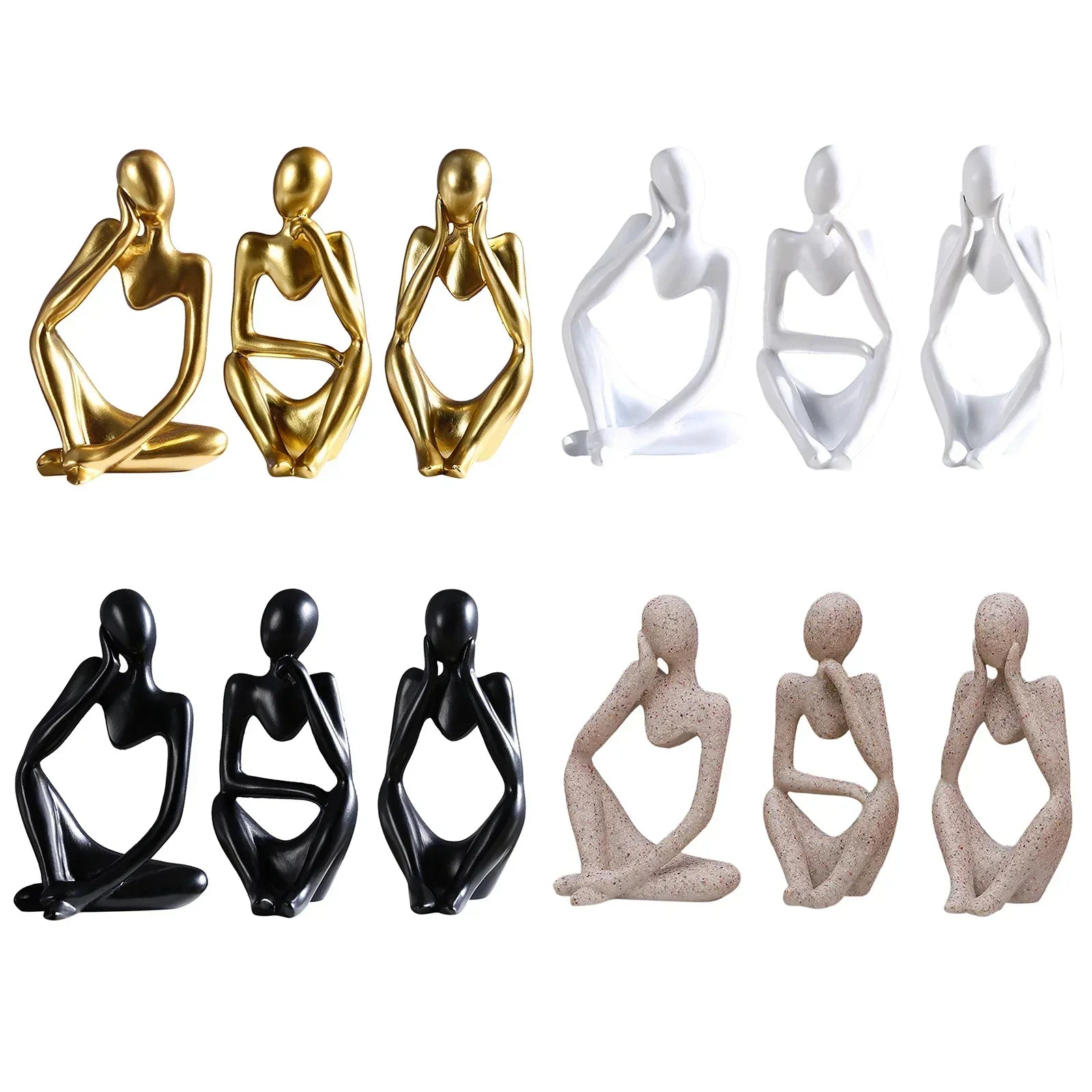 3pcs Abstract Character Sculptures Desktop Ornaments Resin Miniature Figurines Christmas Gifts Home Decor for Office Study Shelf
