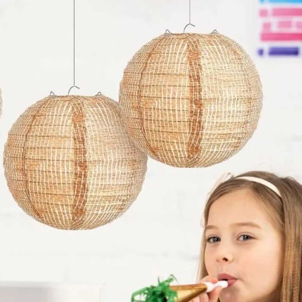 3pcs Durable 8inch Linen Paper Lantern Portable Funny Festival Lantern Unique Hanging Lantern Birthday Party Decor