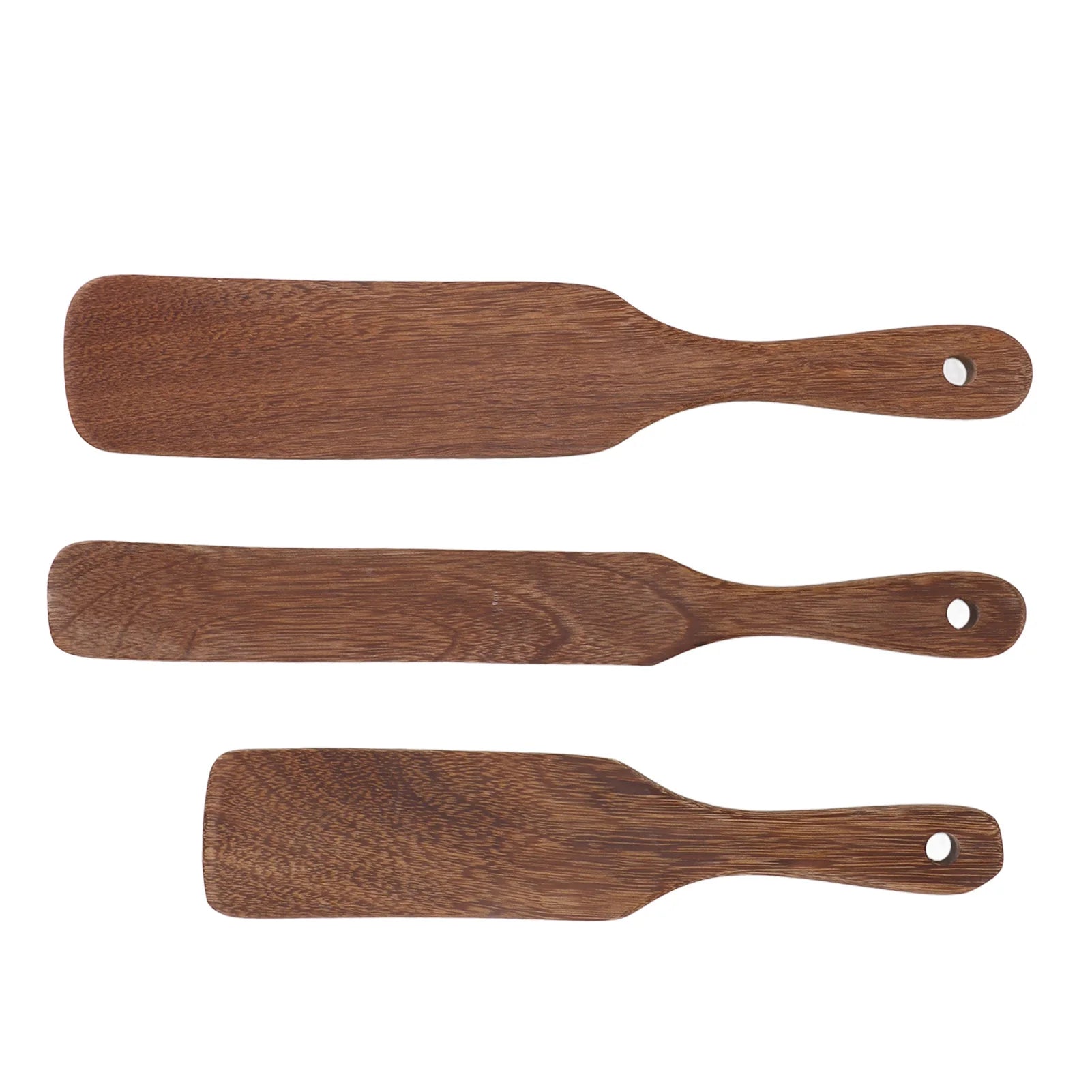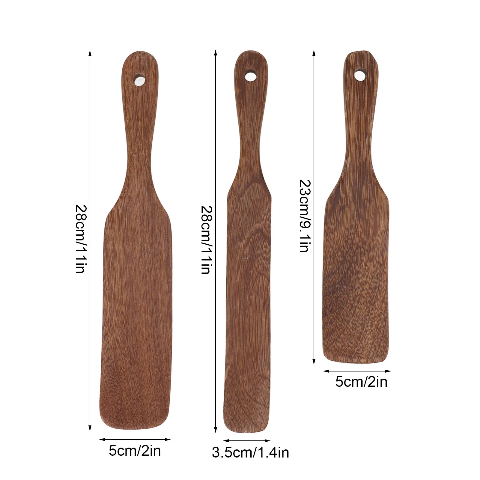 3Pcs Teak Turner Spatula Non Slip Wooden Spatula with Wide Shovel Head for Steak Pizza Milk Salad Home Kitchen Cooking Utensils