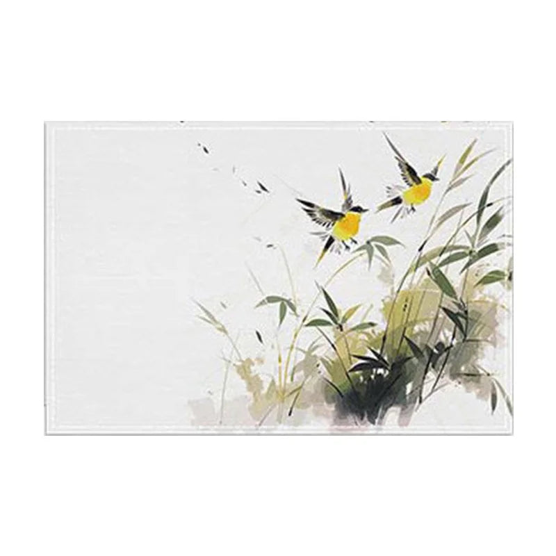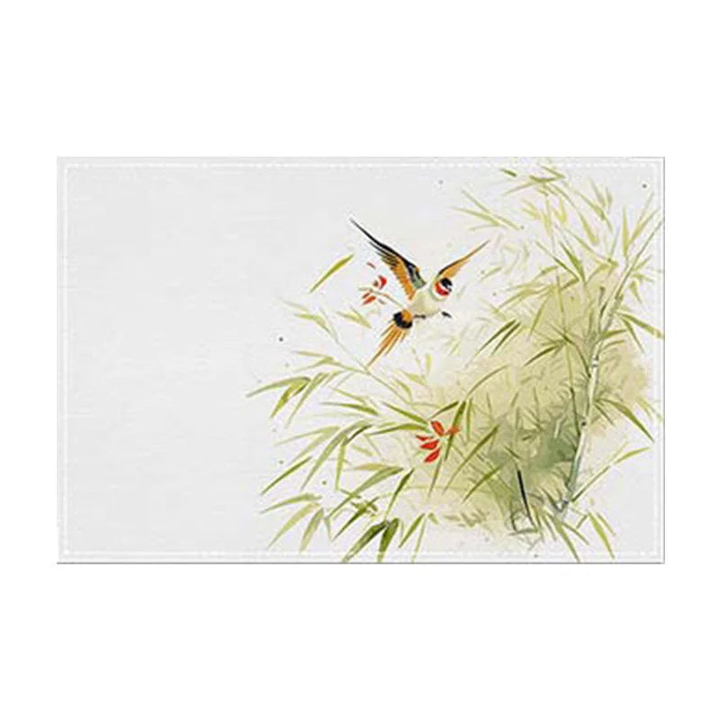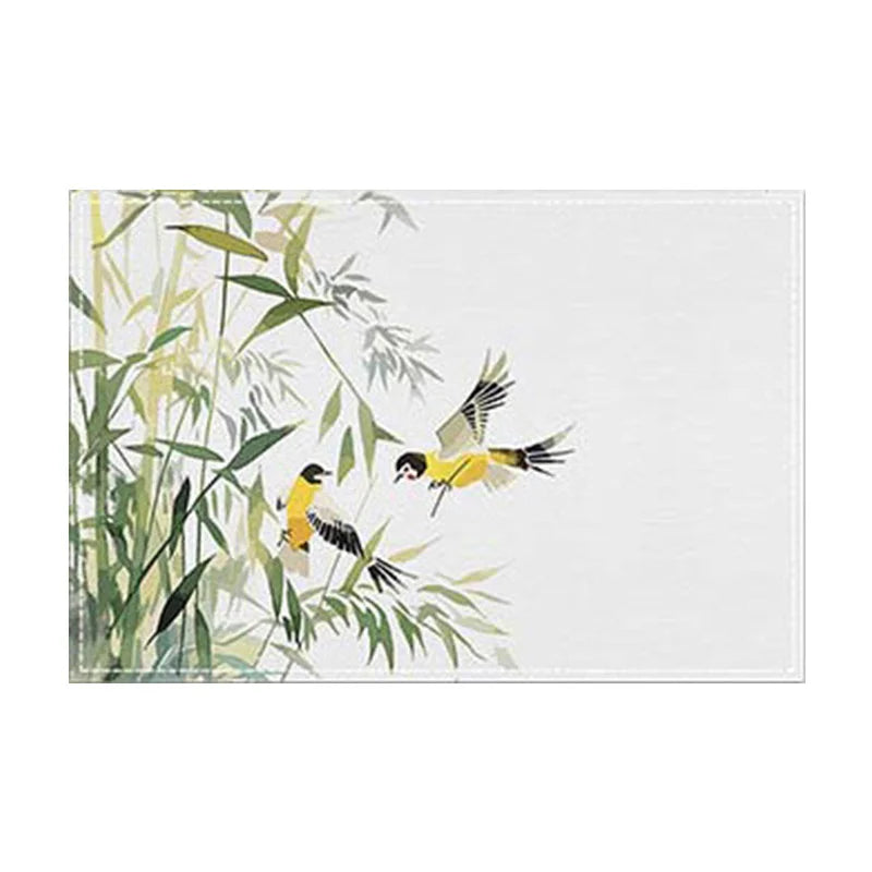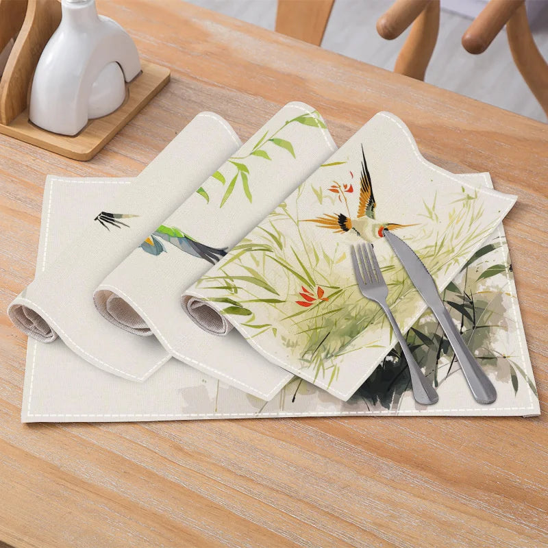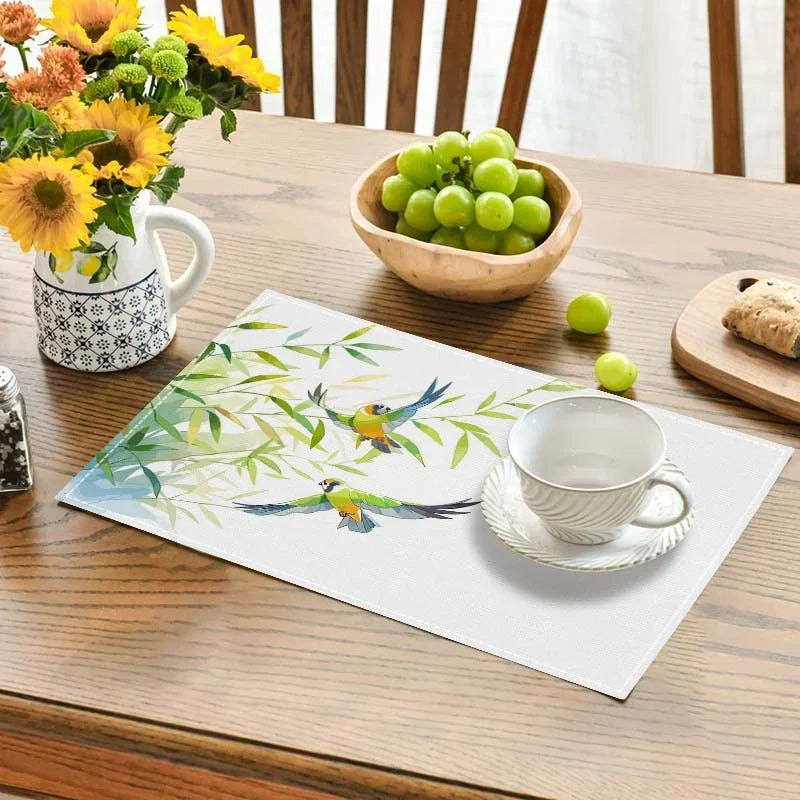 4/6/8Pcs Simple Green Bamboo Leaf Bird Print Placemat 30*45CM Linen Seasonal Spring Mats for Party Kitchen Wedding Dining Decor