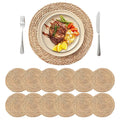 4/8/12pcs Round Woven Placemats Set Boho Rattan Placemat Natural Placemats 12Inch Farmhouse Weave Straw Braided Table Dinner Mat
