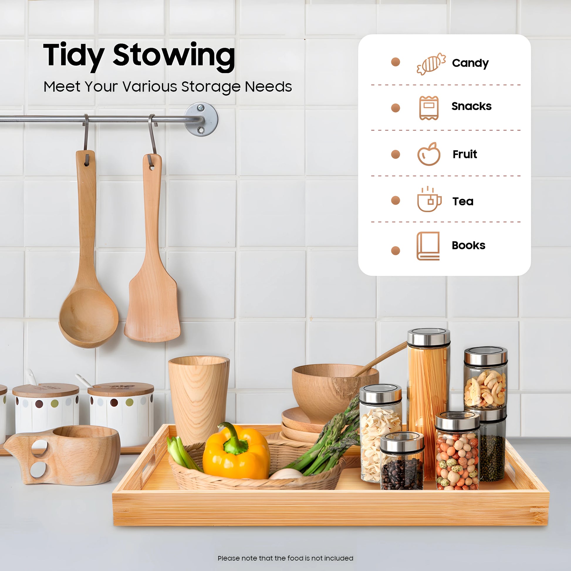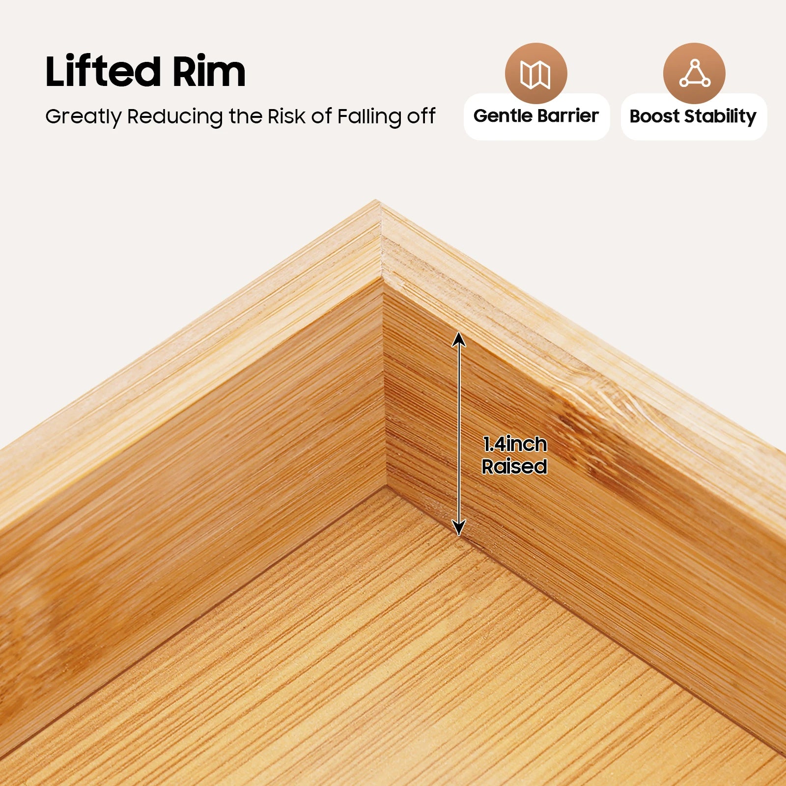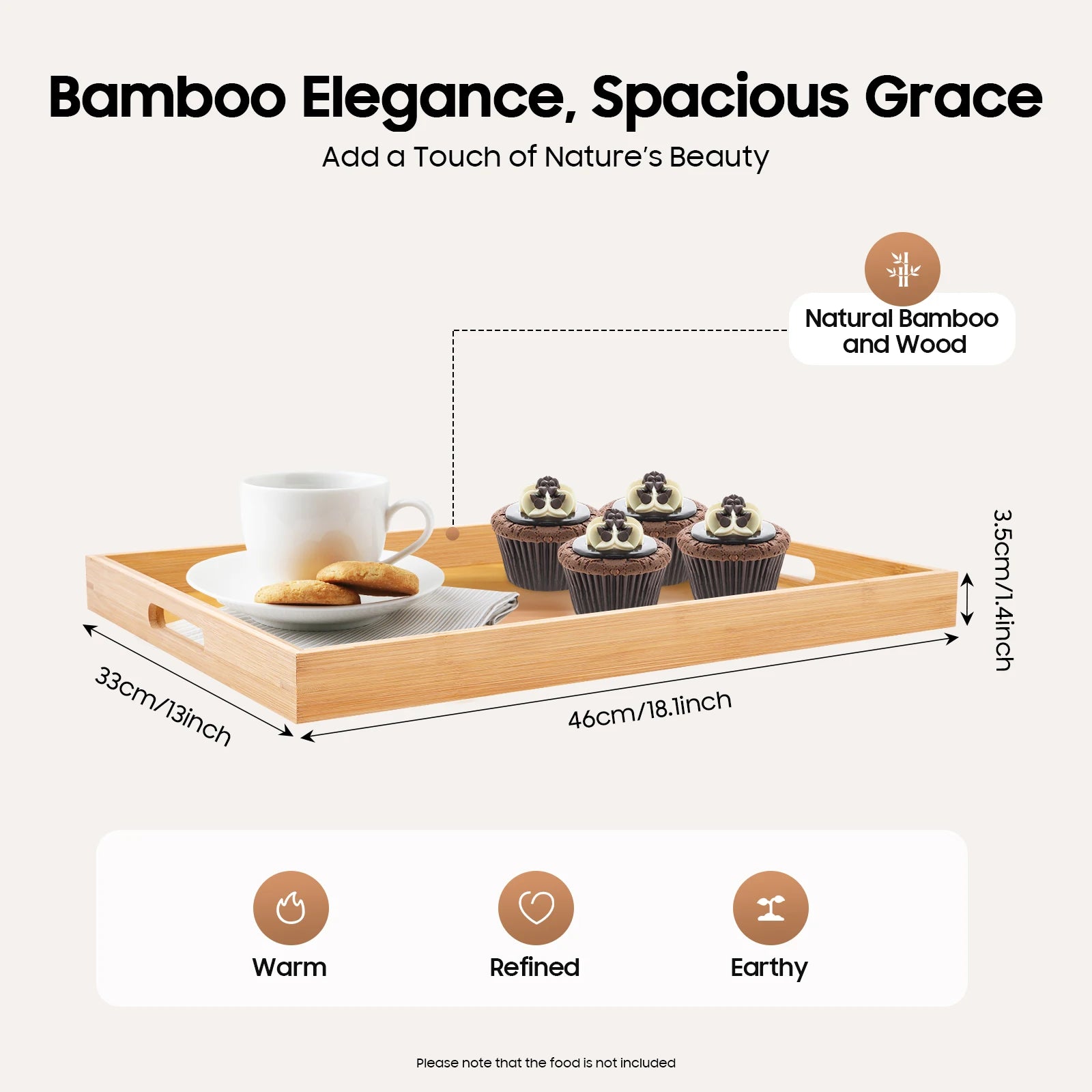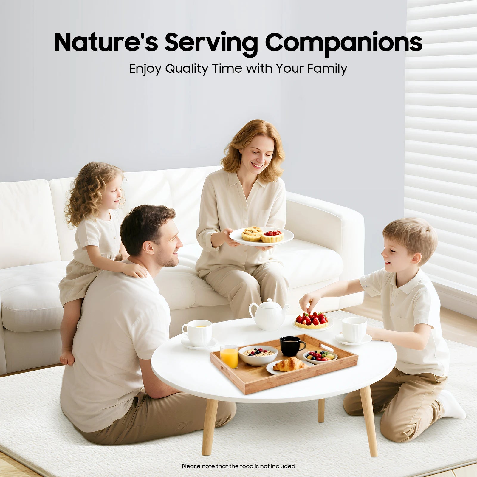 4 Pcs Bamboo Serving Tray Set Rectangular Oil-rubbed 6.61-11.02lbs Capacity Log Color for Breakfast Coffee Tea