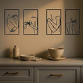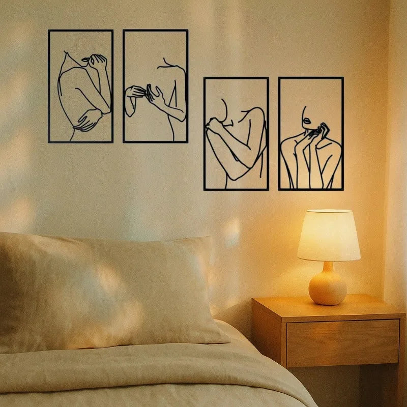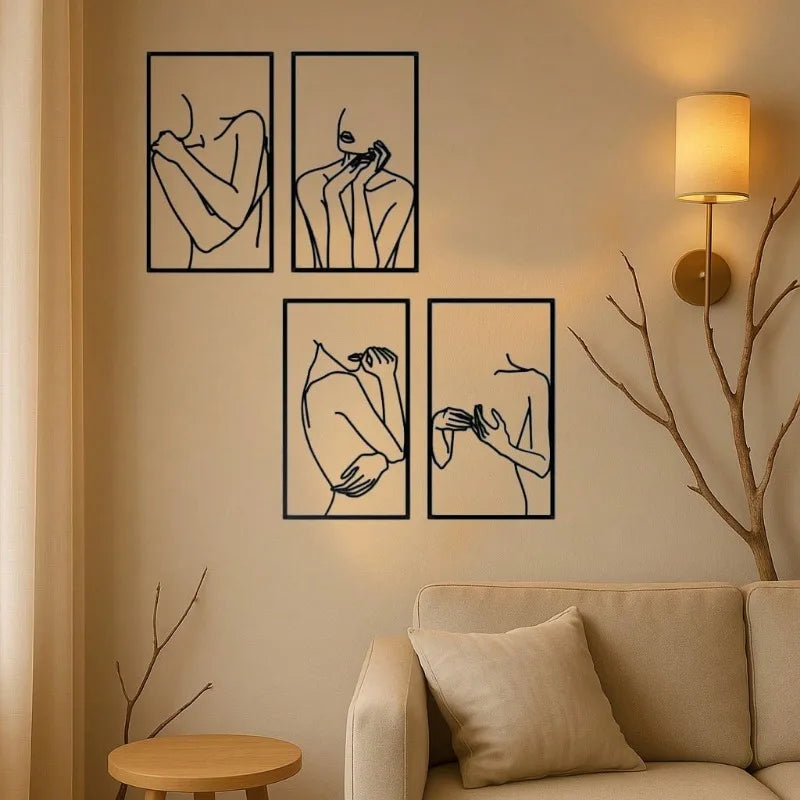 4pcs Black Minimalist Woman Line Art - Abstract Single Line Metal Wall Decor, Waterproof Rustproof Elegant Home Art for Bedroom