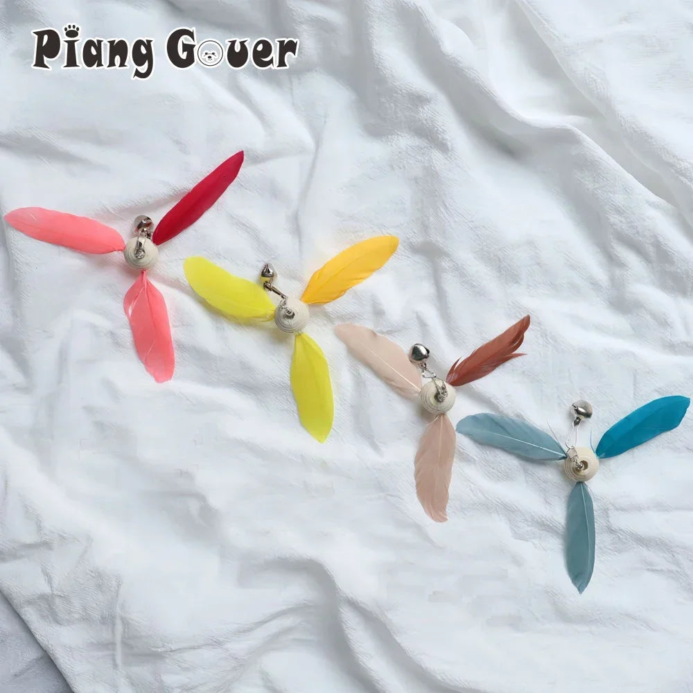 4pcs Colored Feather Rotating windmill Cat Teaser Stick Replacement Header Cat Pet Toy