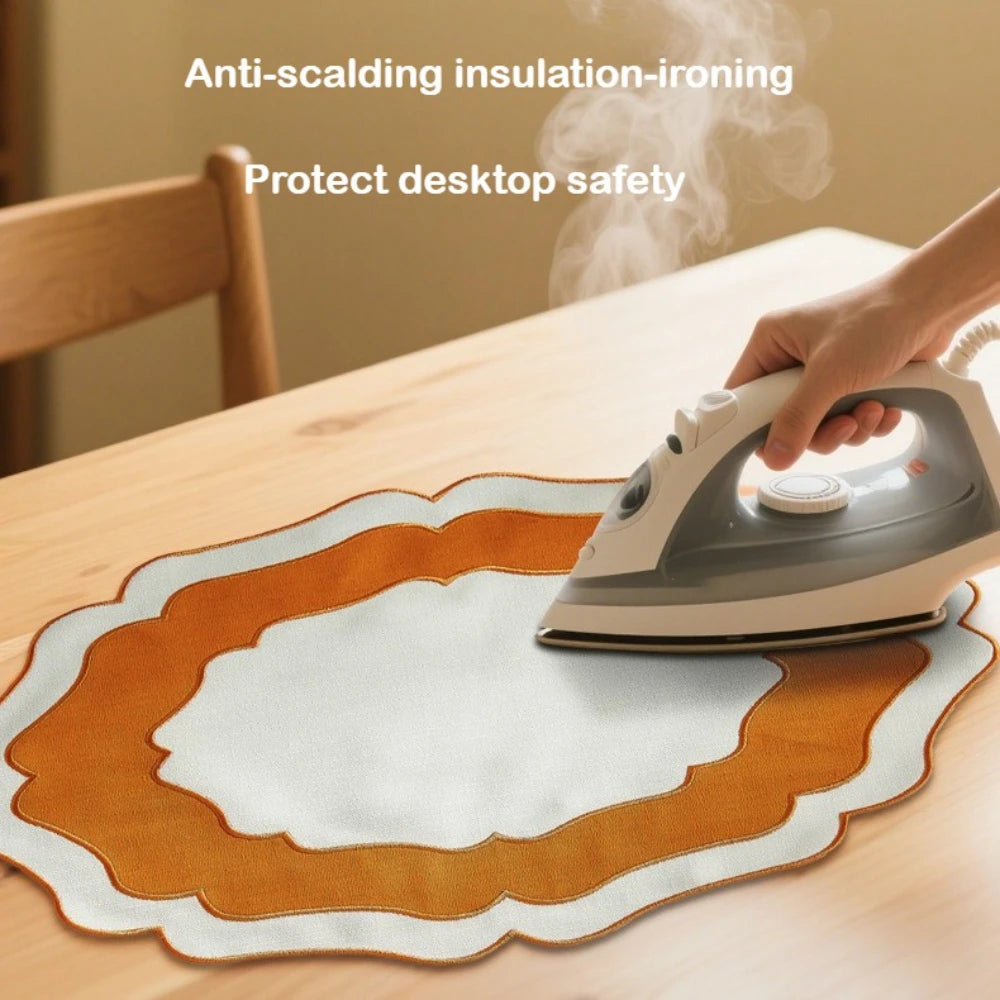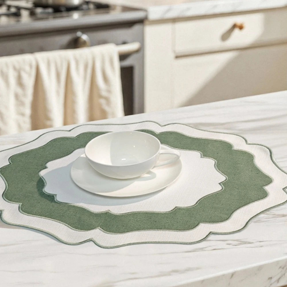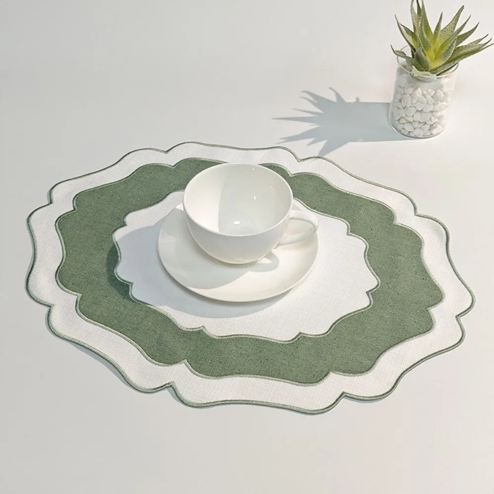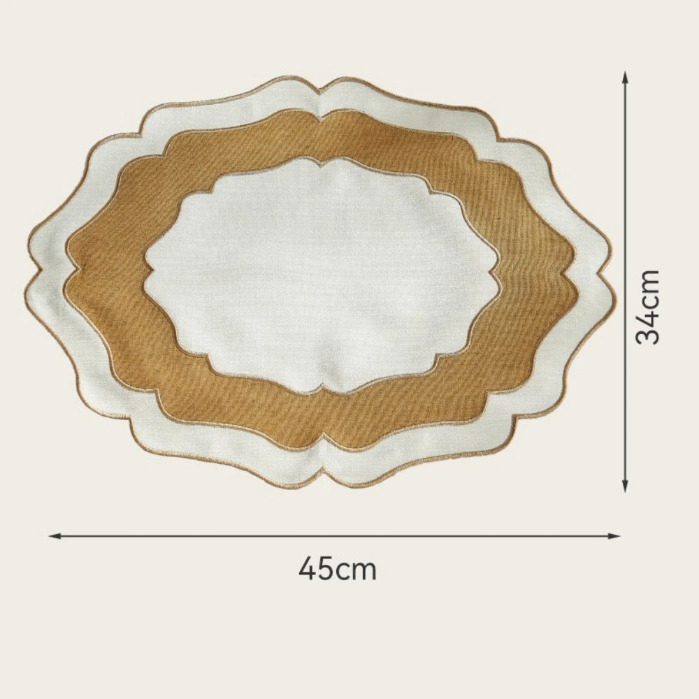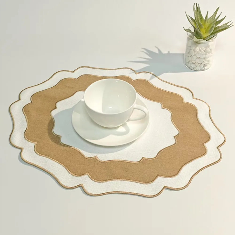 4pcs Restaurant Linen Lace Embroidery Placemats Irregular Dinner Plate Cloth Two-color Fabric Table Set Washable & Reusable