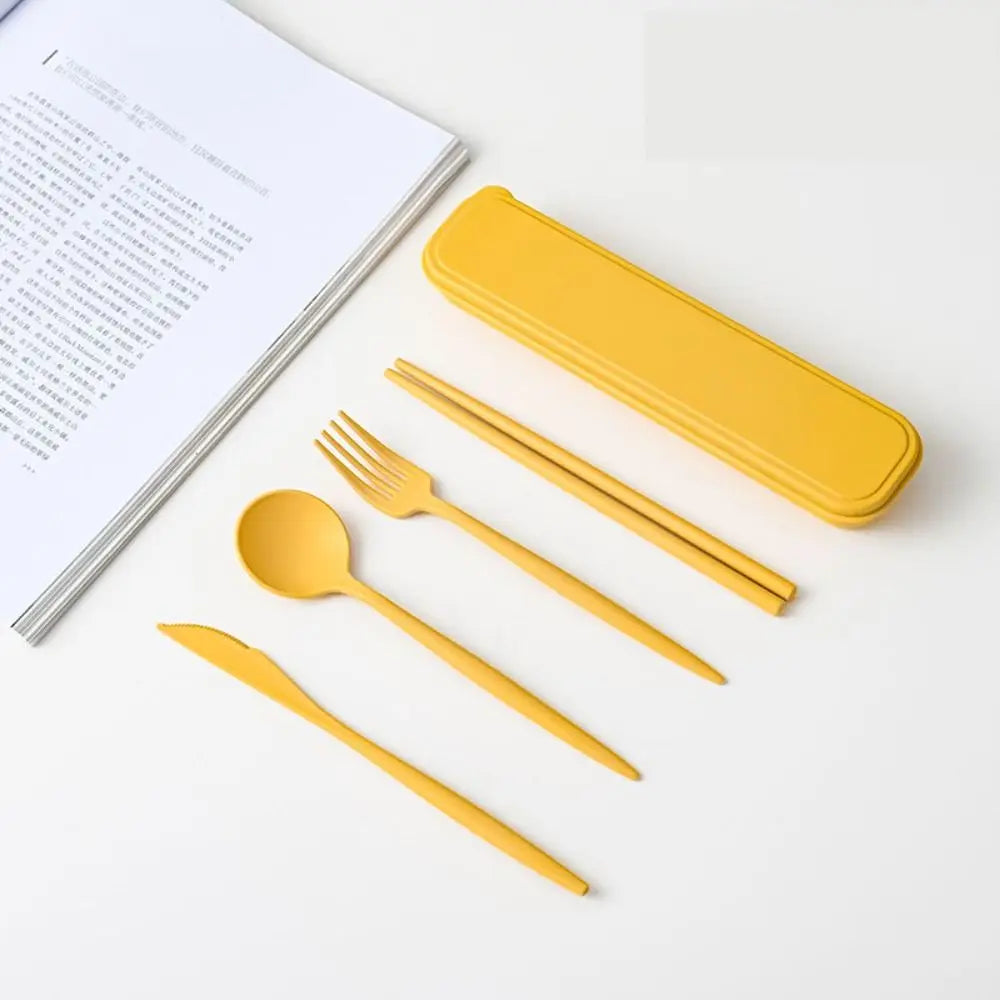 4Pcs Wheat Straw Dinnerware Set Portable Tableware Knife Fork Spoon Eco-Friendly Travel Cutlery Set Utensil Box Chopsticks Set