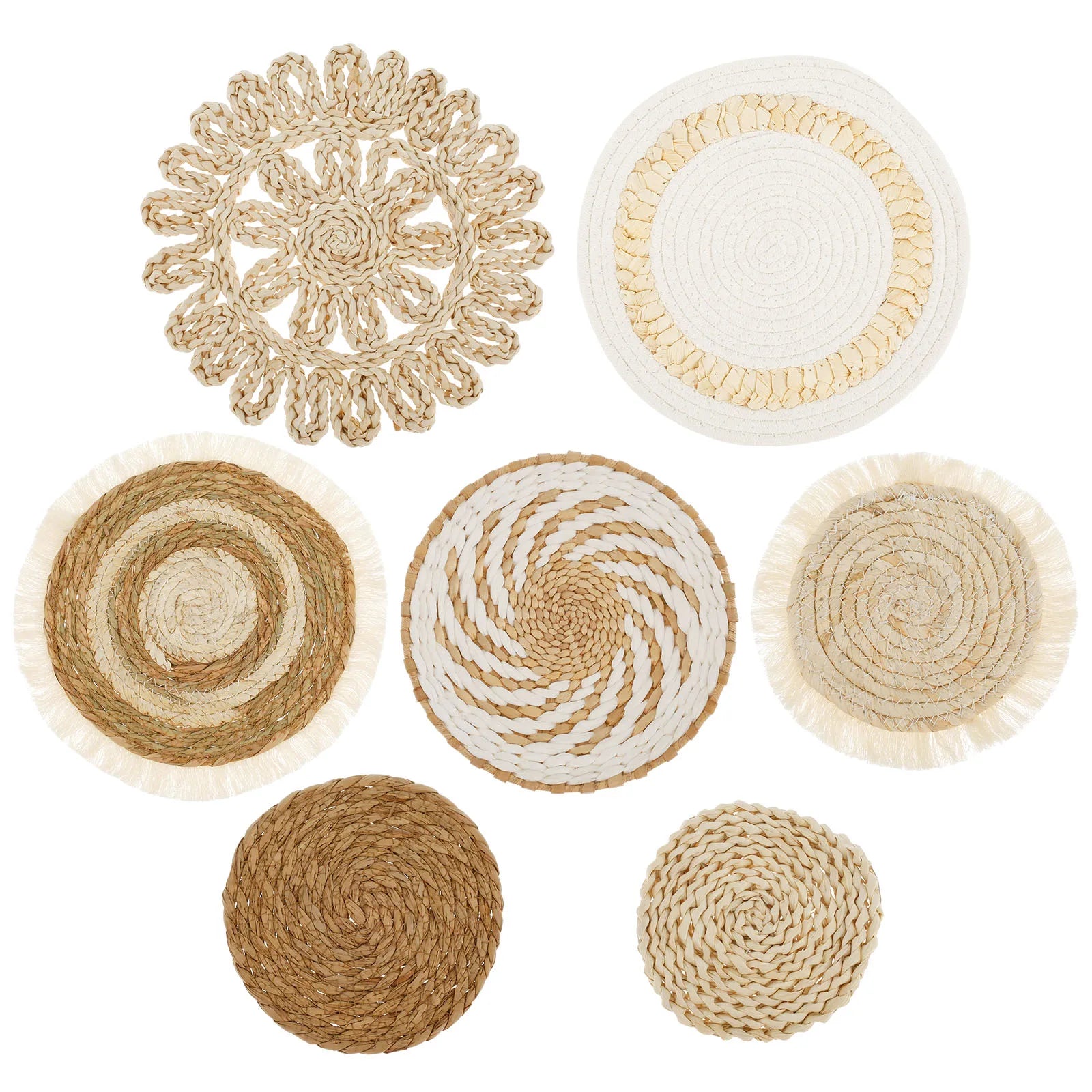 5/7Pcs Hanging Wall Basket Decor Boho Home Decorations Rattan Wall Decor Woven Rattan Seagrass Wall Decor Art Wall Hanging