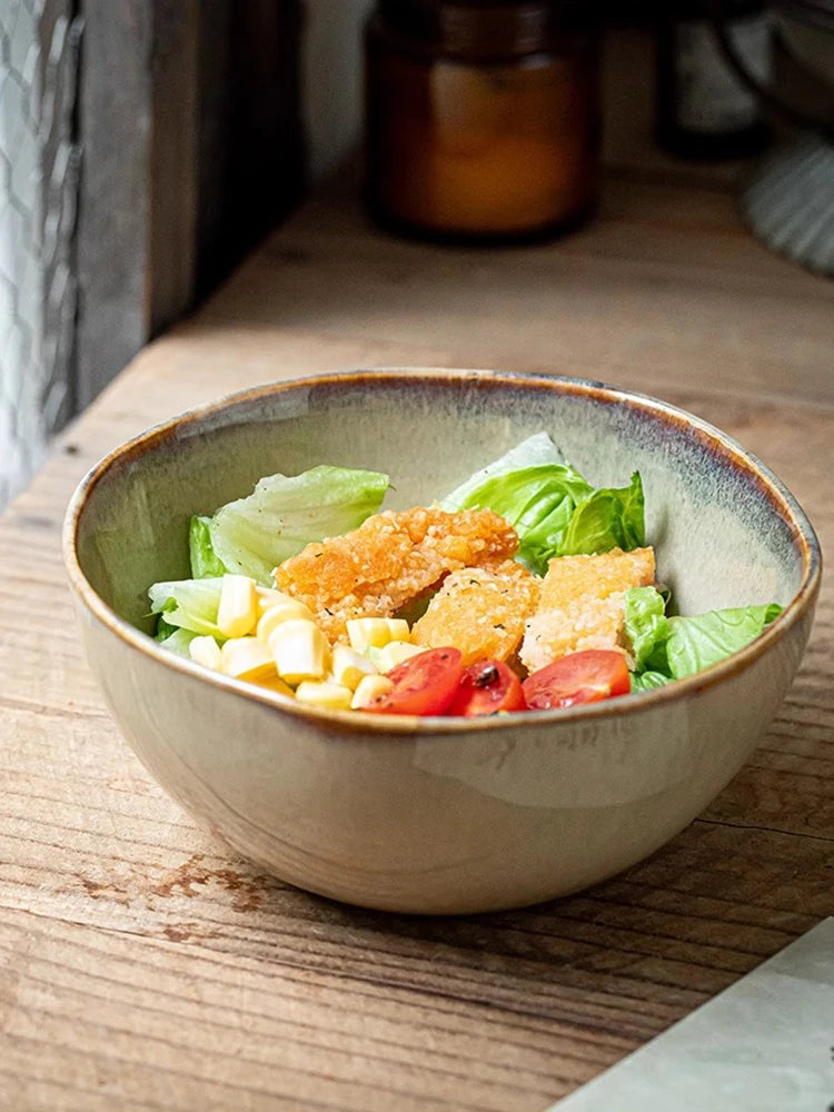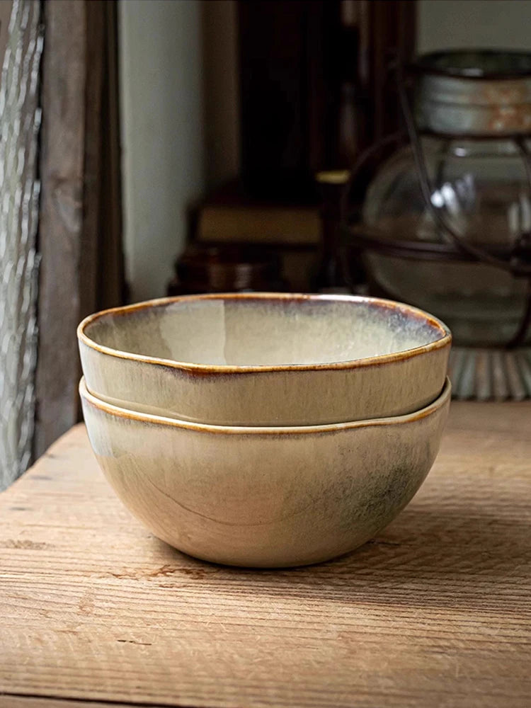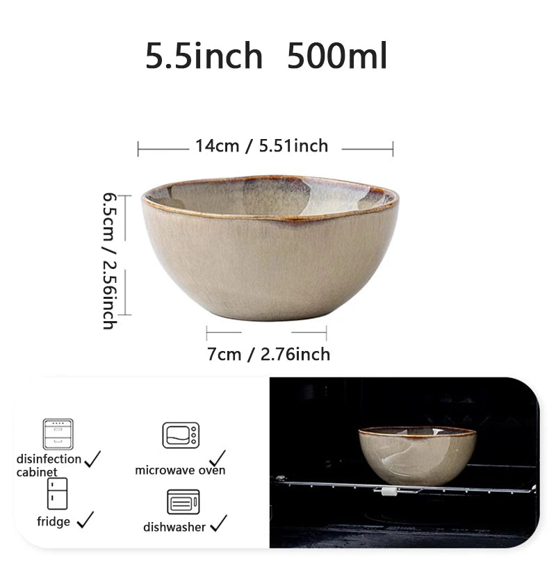 500ml Vintage Ceramic Salad Bowl Heat-resistant Rice Soup Bowl Irregular Edges Kitchen Noodle Bowl Microwave Safe 5.5inch