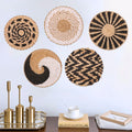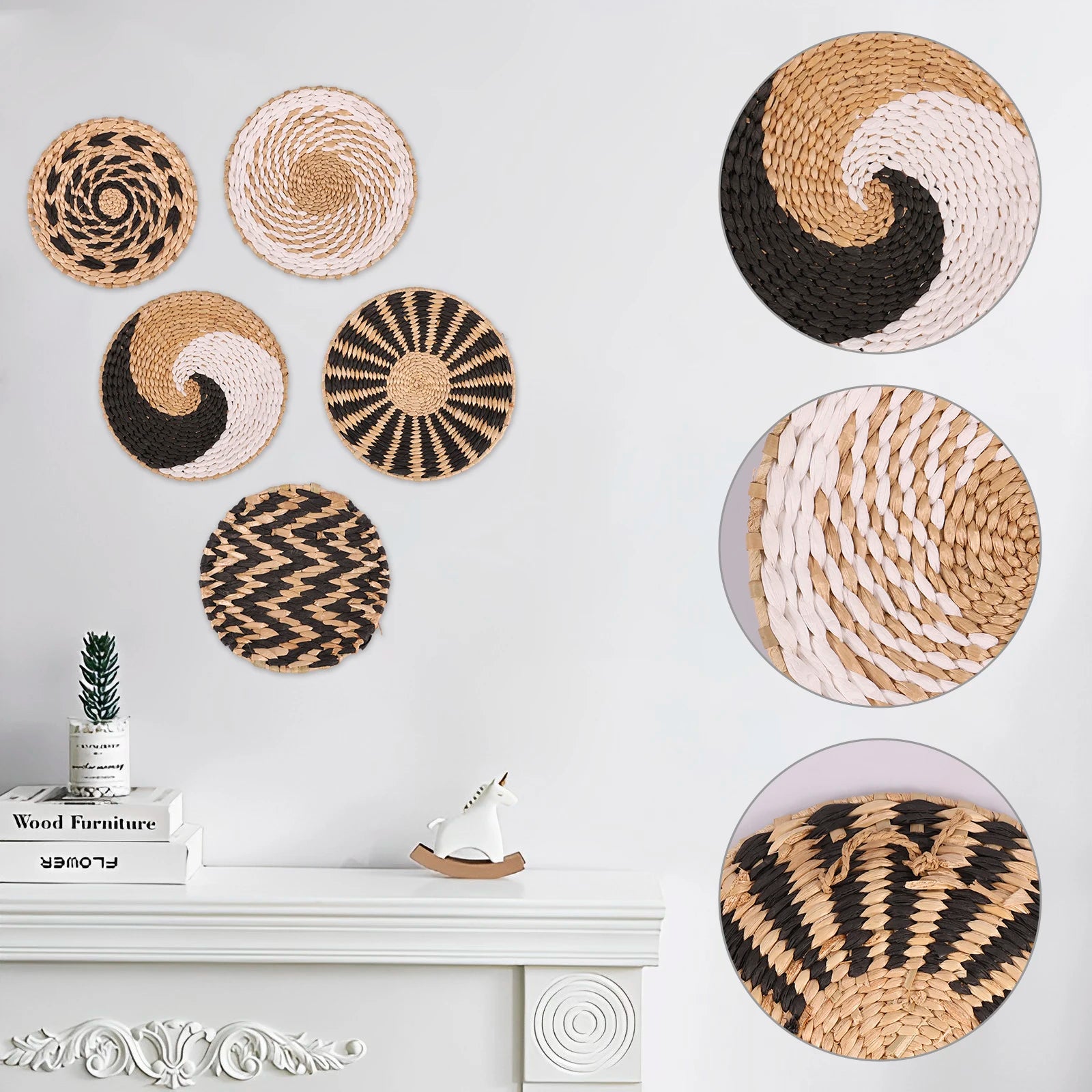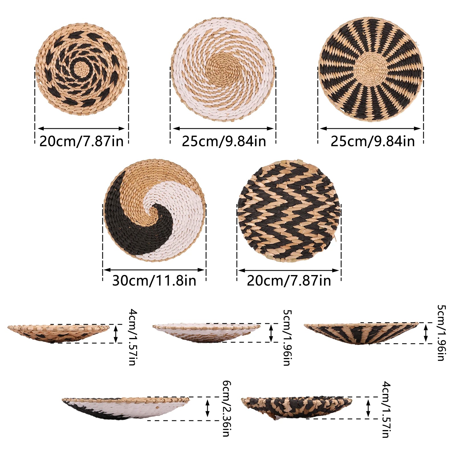 5Pcs Wall Basket Decor Set Woven Rattan Baskets Wall Hanging Decor Handmade Wall Art Natural Basket Wall Decor Serving Tray Art