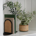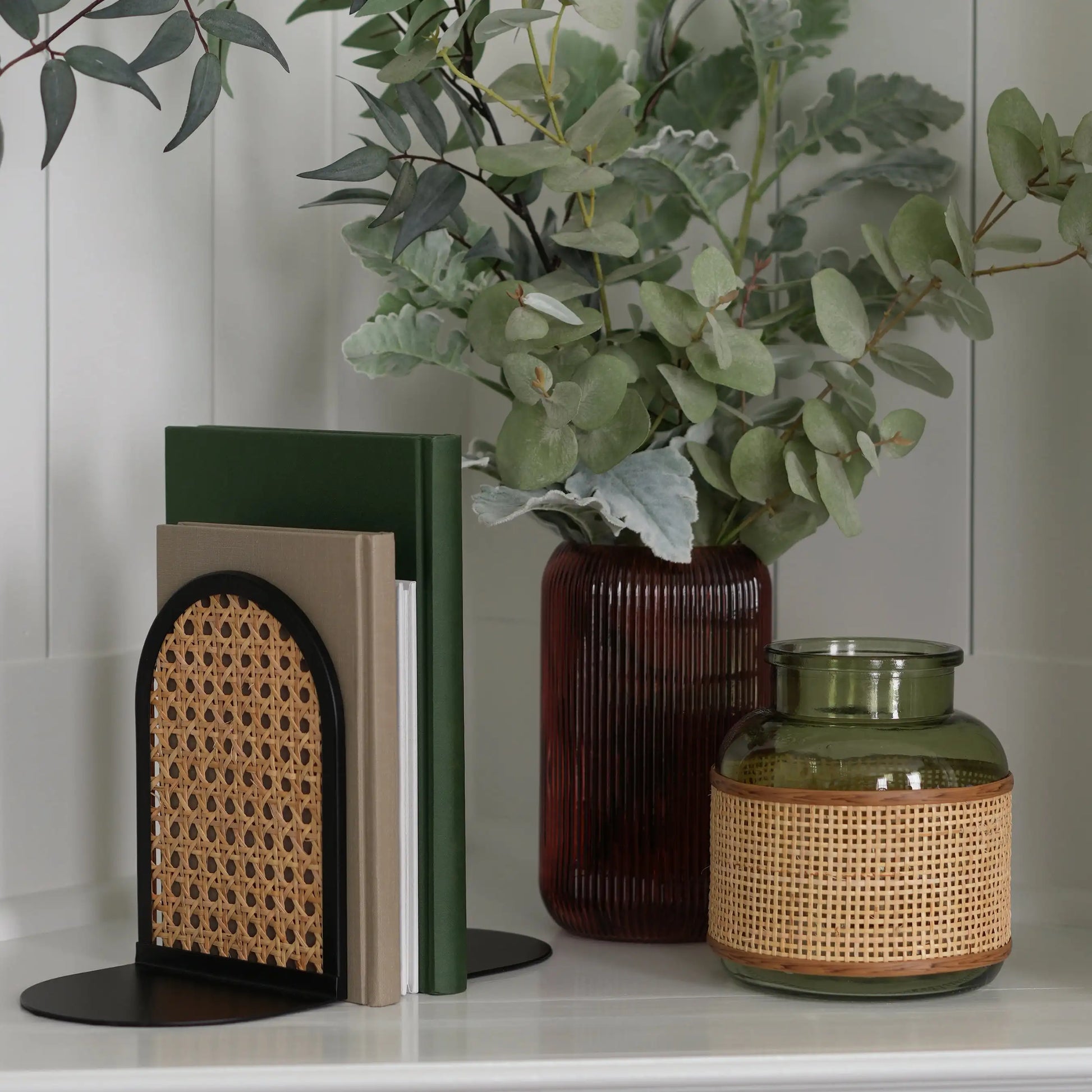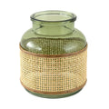 6 Inches Green Translucent Glass Indoor Tabletop Vase with Natural Rattan Caning Wrap