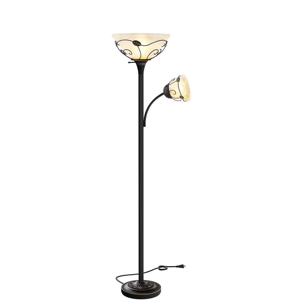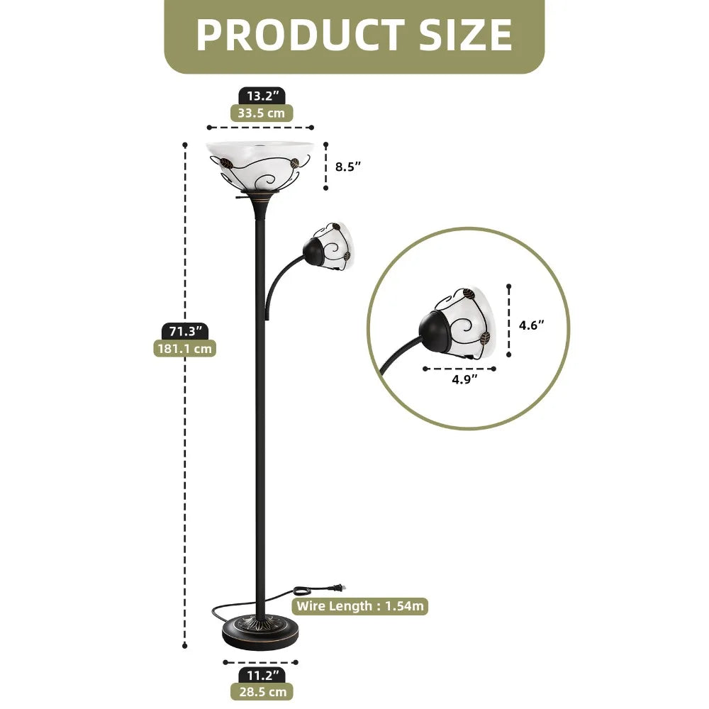 71" Retro Torchiere Floor Lamp with Sidelight Metal Standing Lamp for Reading