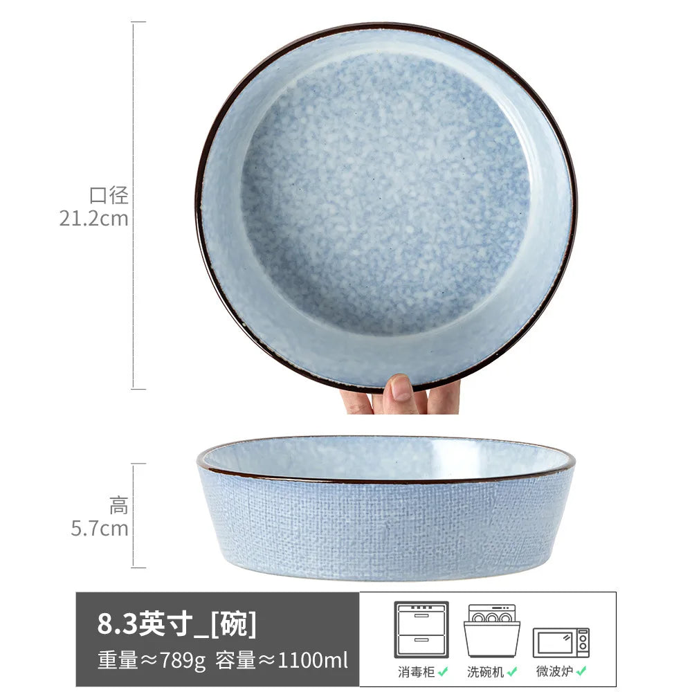 8.3 Inch Vintage Ceramic Household Vegetable Bowl Restaurant Western Salad Bowl Tableware Soup Lamian Noodles Bowl