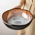 9.5-inch Household Kiln Glazed Large Ceramic Bowl Irregular Deepening Soup Bowl Boiled Fish Bowl Microwave Ovens Are Available