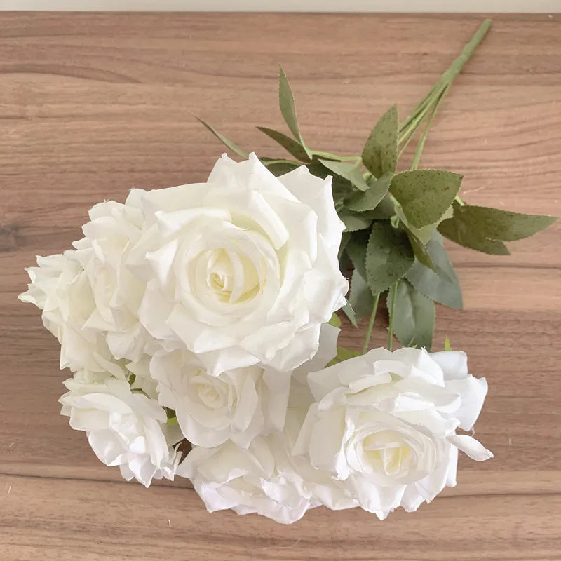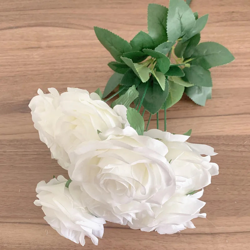 9Heads Roses Bouquet Artificial Flower Milk White Ivory White Rose Fake Rose Living Room Decoration Wedding