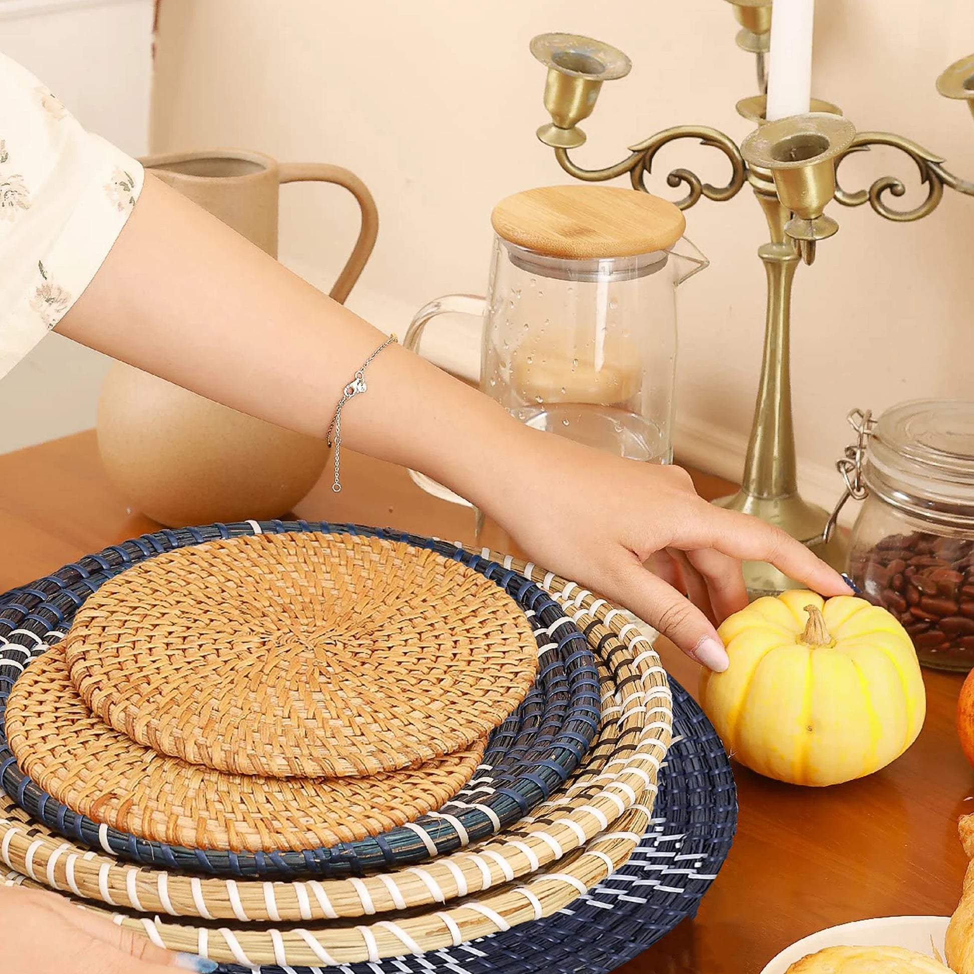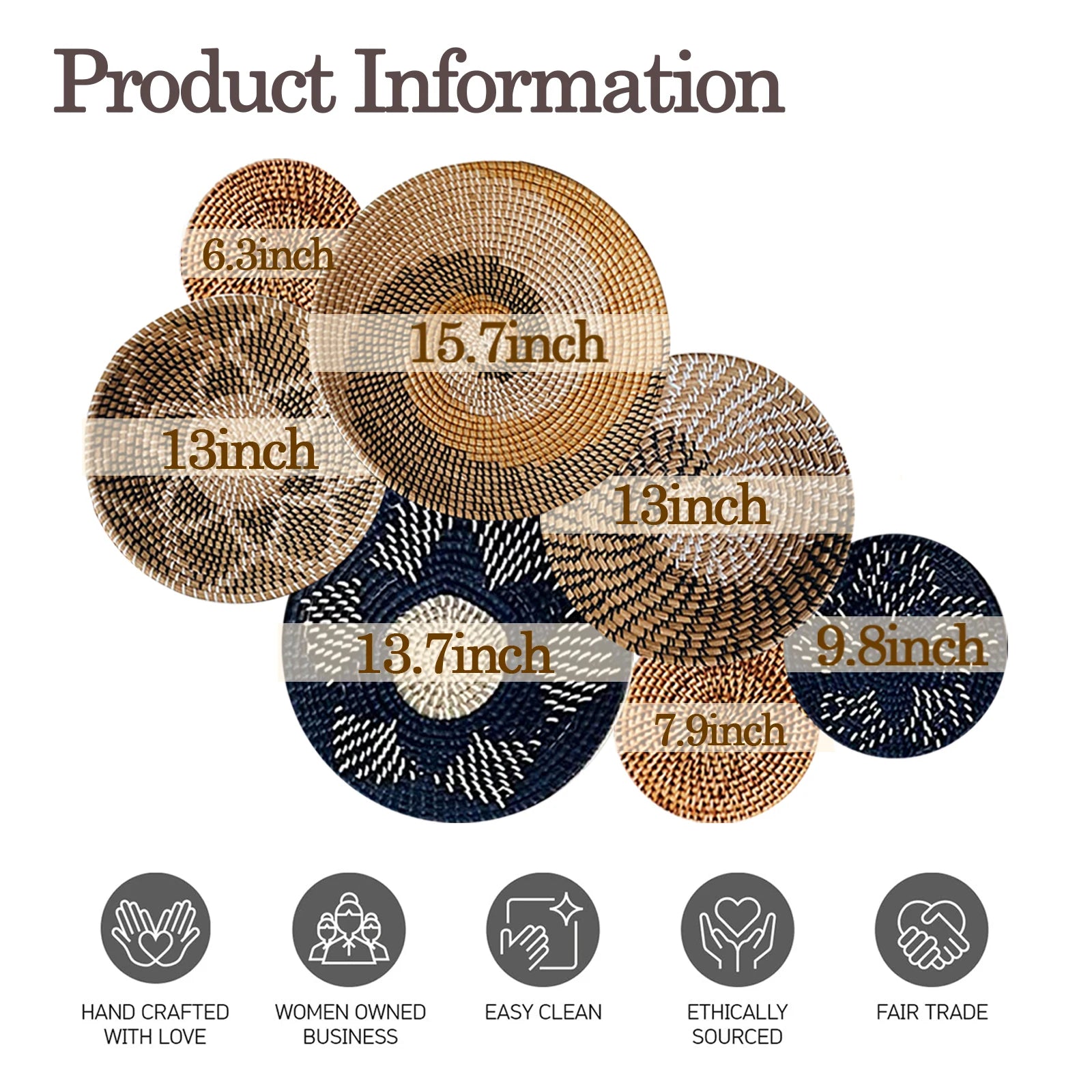 9PCS Boho Wall Decor Rattan Wall Decor Wicker Wall Decoration Hanging Wall Basket Wicker Wall Tray for Living Room
