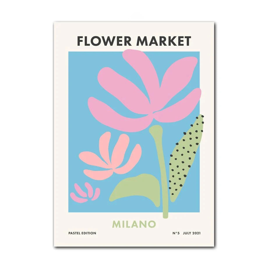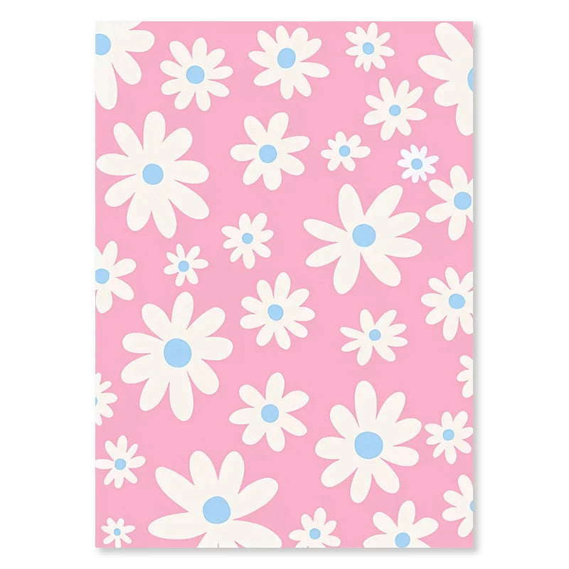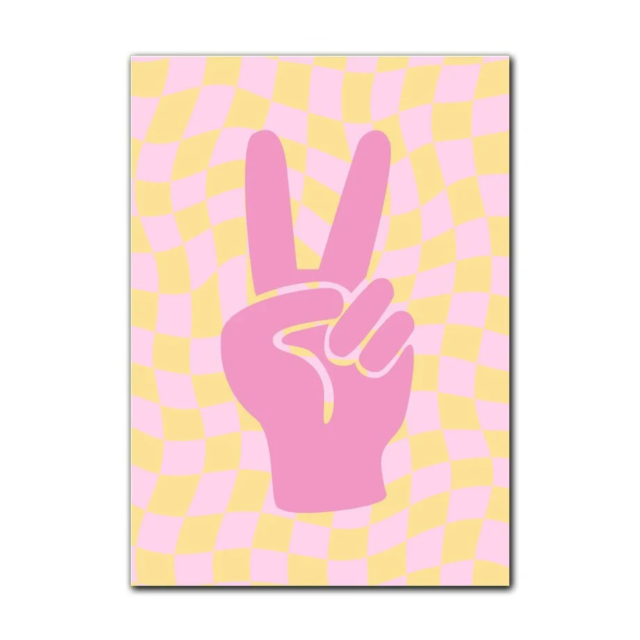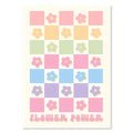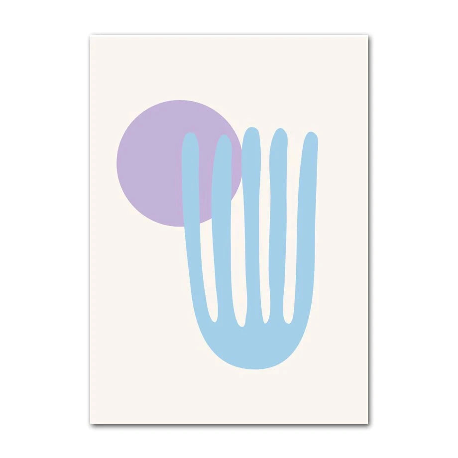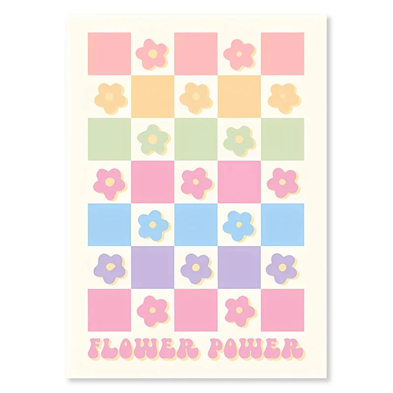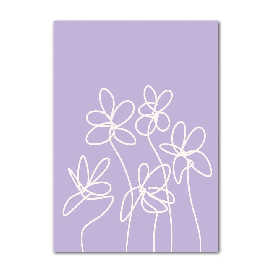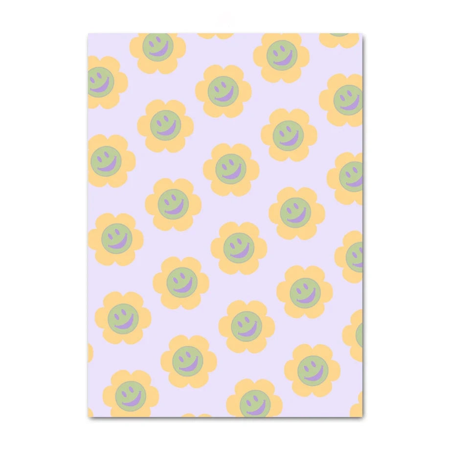 Abstract Danish Pastel Wall Art Poster Prints Purple Checkered Smiley Flower Canvas Painting Picture for Living Room Home Decor