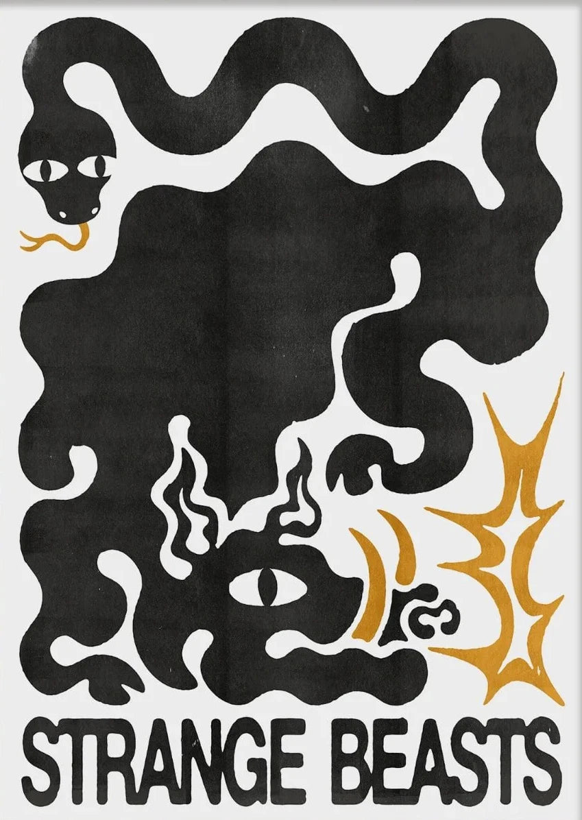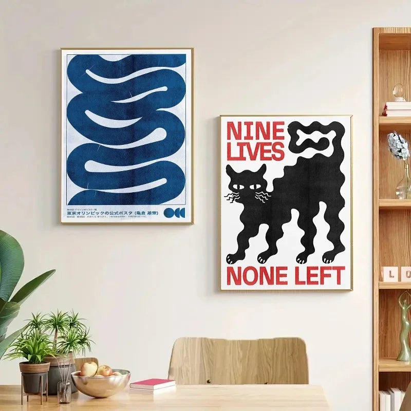 Abstract Japanese Okinawa Prefecture Travel Canvas Poster Bauhaus Geometric Cat & Snake Animal Wall Art Prints Modern Home Decor