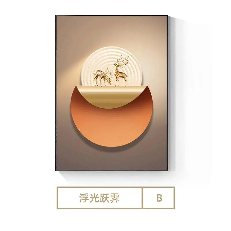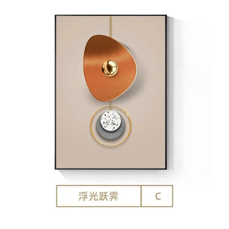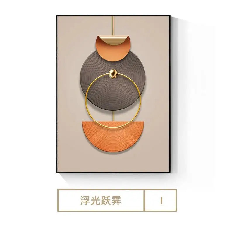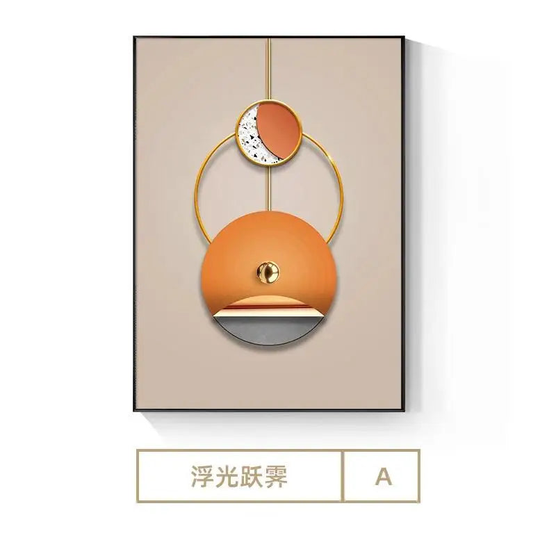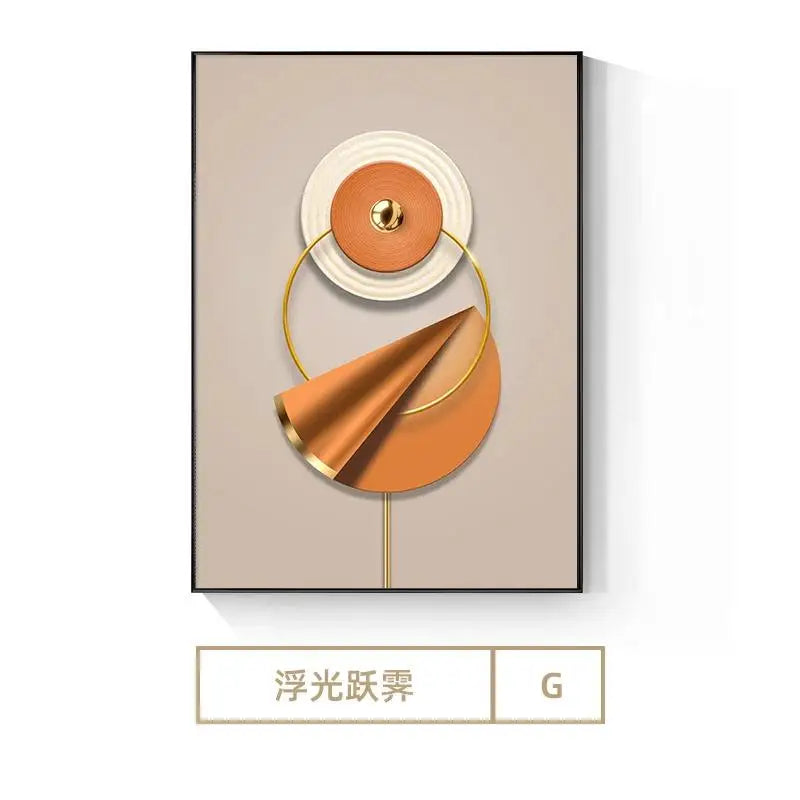 Abstract Luxury Geometry Canvas Painting Wall Art Orange Golden Light and Shadow Modern Posters Prints for Living Room Wall