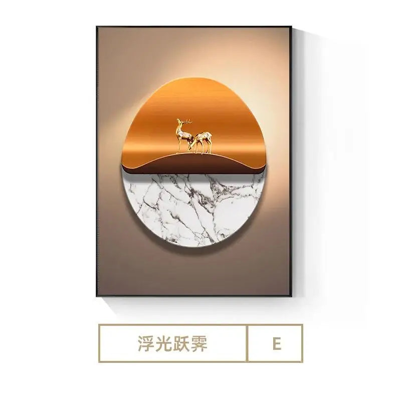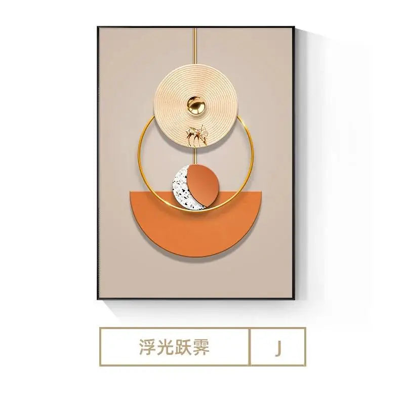 Abstract Luxury Geometry Canvas Painting Wall Art  Orange  Golden Light and Shadow  Modern Posters  Prints for Living Room Wall