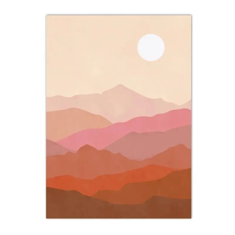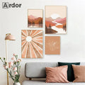 Abstract Mid Century Poster Boho Terracotta Sun Moon Canvas Painting Landscape Print Nordic Wall Art Pictures Living Room Decor