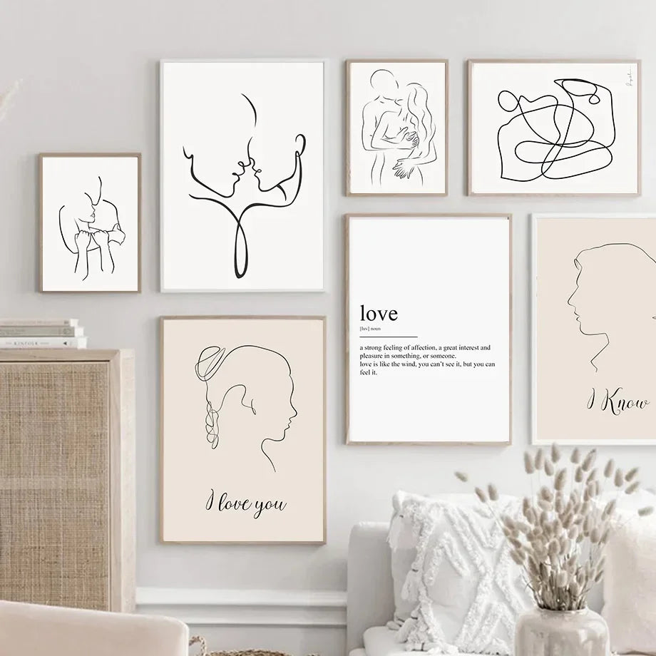 Abstract Minimalist Line Heart Love Quote Wall Art Canvas Painting Nordic Posters And Prints Wall Pictures For Living Room Decor